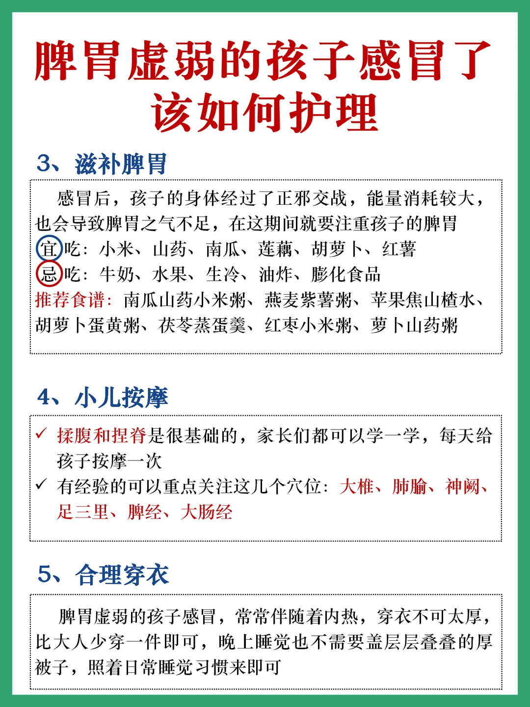 👉脾胃虚弱的孩子感冒,常常伴随着内热,穿衣不可太厚,比大人少穿一件即可