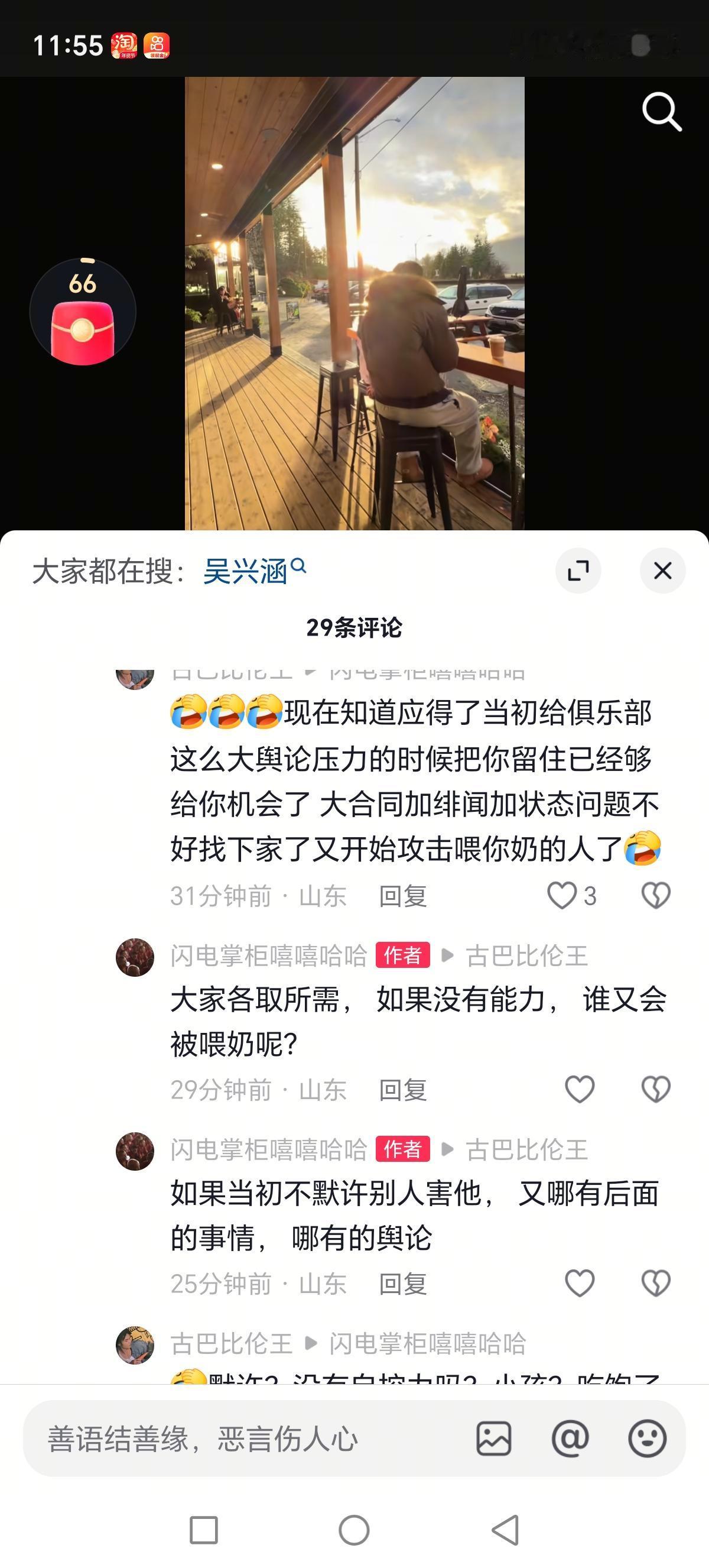 吴兴涵妻子社媒疑似指责泰山俱乐部,球迷发问:当初给俱乐部这么大舆论压力的时候把你留住,已经够给机会了。 吴兴涵妻子回应:大家各取所需,如果没有能力,谁又会被喂奶呢?如果当初不默许别人害他,又哪有后面的事情,哪有的舆论。 吴兴涵妻子的意思。俱乐部默认别人害他?吴兴涵做了什么事,自己和公众最后都是清楚的,有什么你可以拿出来讲,但是污蔑俱乐部不应该吧。 感觉山东泰山队管理层如果硬气一点,赶紧让吴兴涵走吧,不要再各其所需了,一切都对得起他了,他的妻子就是一个炸弹,说不定什么时候就炸俱乐部一下,这谁受得了吗? 山东泰山队