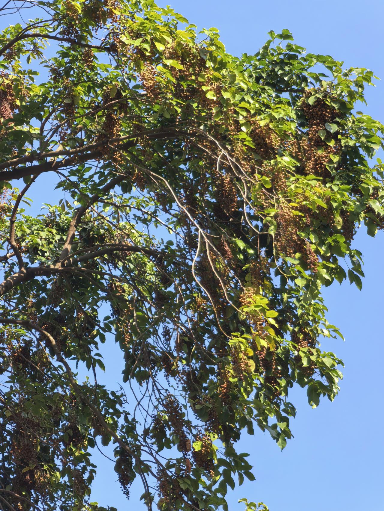 分享一张你最近随拍的照片小区这棵树上结果子很多,一串一串的,和葡萄一样。每天有很多小鸟在啄食,估计人不能食用。