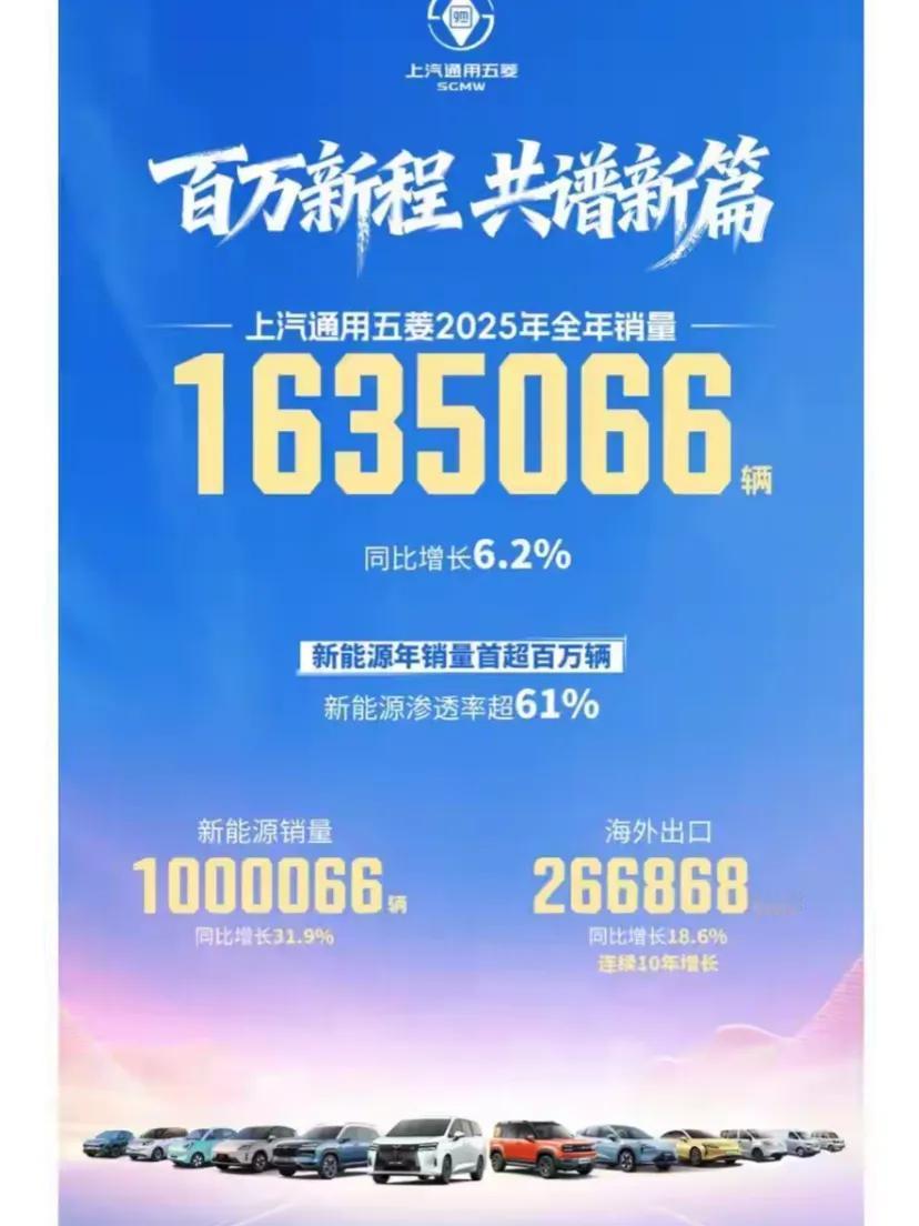 不得不承认,这就是赤裸裸的现实!当14亿国人以为比亚迪、吉利、奇瑞才是车圈顶流时,那个人民需要什么就造什么的五菱汽车,全年销量超163.5万辆,大约每隔19秒就有一个家庭选择了五菱。截止2025年底,五菱累计产销已超3100万辆。 我的年度菱感记忆 在竞争激烈、风云变幻的汽车市场中,能保持十年销量持续增长的品牌屈指可数,五菱神车便是其中的佼佼者。 自2015年以来,五菱品牌以其独特魅力,收获无数消费者青睐,销量一路高歌猛进。五菱神车究竟凭什么能缔造这一辉煌成就? 精准把握市场需求是五菱神车成功的关键。在燃油车盛行的年代,五菱敏锐捕捉到个体经济崛起带来的商机,推出五菱之光、五菱荣光、五菱宏光等“创富神车”。这些车型空间大、皮实耐用、宜商宜家,完美契合小微企业和家庭创业需求,迅速成为市场宠儿,长期霸占MPV销量榜首,累计销量超2000万辆 ,五菱宏光甚至被福布斯杂志评为“地球上最重要的一款车”。 进入新能源时代,五菱再次精准卡位。察觉到城市短途出行和家庭第二辆车的需求缺口,2020年推出宏光MINIEV,不到3万元的亲民价格,让新能源汽车走进寻常百姓家。 该车连续52个月蝉联细分市场销冠,累计销量突破145万辆。此后,五菱持续丰富新能源产品矩阵,如五菱缤果、星光家族等,满足不同层次消费者需求。 2024年,五菱新能源销量达82.5万辆,渗透率超过50%,其中缤果家族年销量21万辆,星光家族10万辆。 技术创新则是五菱神车的底气所在。秉持技术平权理念,五菱打造“天·灵·神”技术矩阵。神炼电池3.0以“五零安全”标准重新定义行业标杆,通过多项极端测试,安全性能卓越,4.0版本更是布局前沿技术,对标特斯拉4680电池 ,且保持成本优势。 灵眸智驾技术采用分层技术矩阵,拒绝功能堆砌,覆盖不同消费层级。灵犀动力3.0解决混动车型高速乏力痛点,搭载该系统的五菱星光S纯电续航达164公里,综合续航1346公里,亏电油耗仅3.98L/100km。 智能制造体系与智能座舱的创新,同样彰显五菱实力。全球首创的“精益智造岛式工厂”自动化率高、成本低、质量优,实现产品全生命周期数据追溯。灵语座舱搭载自研AI中枢大模型,方言识别率超95%,打破语言屏障,且成本控制出色。 独特的营销策略也为五菱神车销量增长助力不少。从“人民需要什么,五菱就造什么”的口号,到与迪士尼、草莓熊等IP联名,五菱成功实现品牌形象从“工具车”到“潮流单品”的转变,吸引大量年轻群体关注。 五菱神车十年销量持续增长,是精准市场定位、持续技术创新、独特营销策略共同作用的结果。未来,相信五菱将继续秉持初心,以消费者需求为导向,不断创新,为用户带来更多优质产品,续写销量传奇。