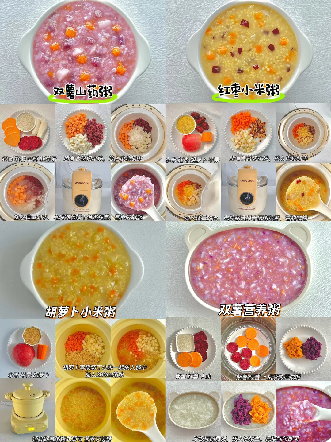 今天给大家分享9款好喝的果蔬粥的做法,简单好做,真的太好喝了~软糯鲜香、营养均衡,简单快手又方便,自己做的粥料足、软糯鲜香、老少皆宜~隔水炖出来的粥香浓好喝,每次熬粥家人都抢着来两碗~~~ 月龄小的宝宝可以把食材切碎一点更好消化~~挑食宝宝也能爱上的营养辅食粥!来上一碗,超暖心又元气满满的 🥣具体做法参考图文教程哦~