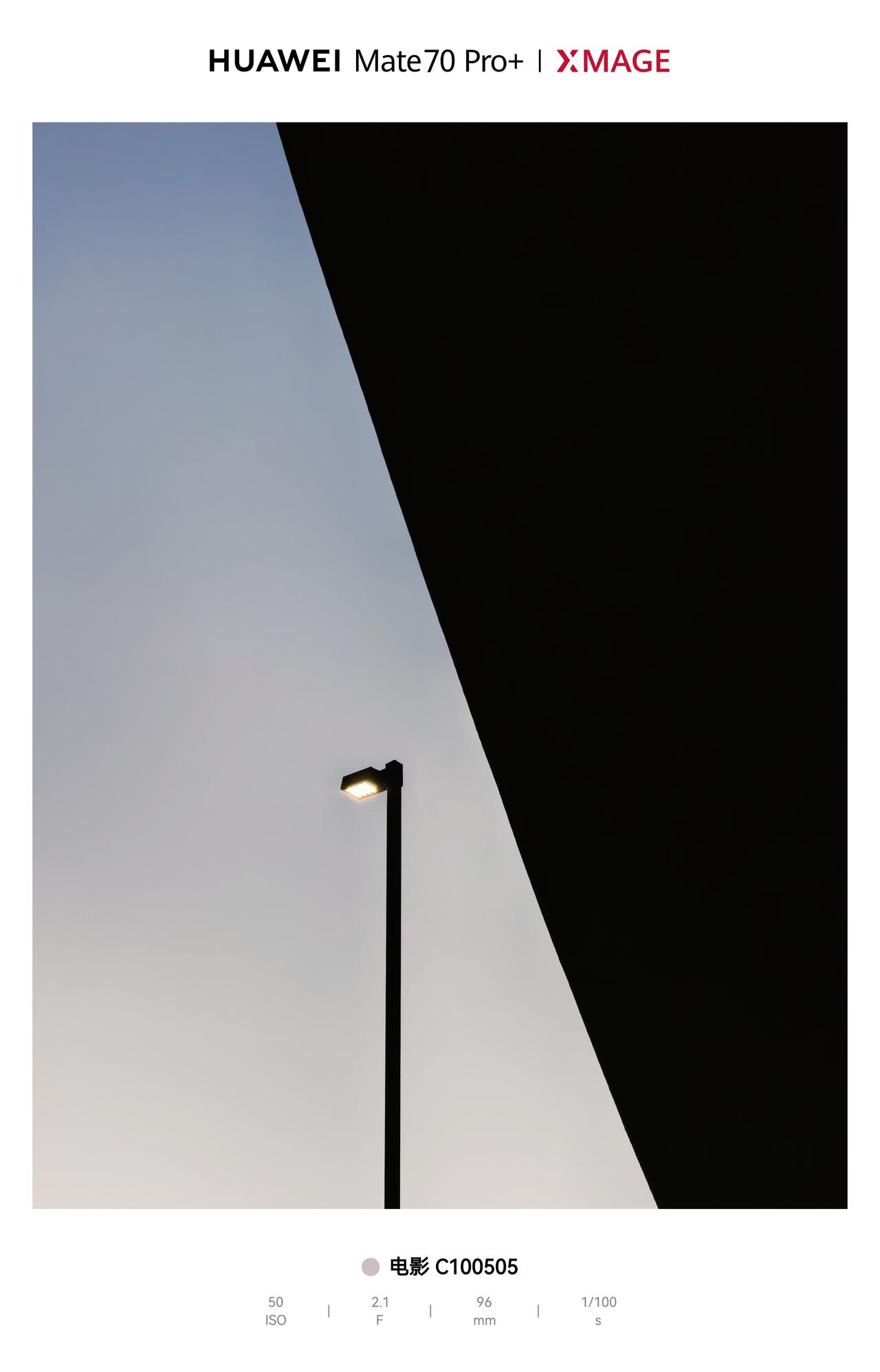 Pro+的成片惊艳到了!简单的路灯场景,被XMAGE调出了明暗碰撞的电影感,冷调的天空和浓黑的色块形成强烈对比,一盏路灯又成了画面里的点睛之笔,氛围感直接拉满!