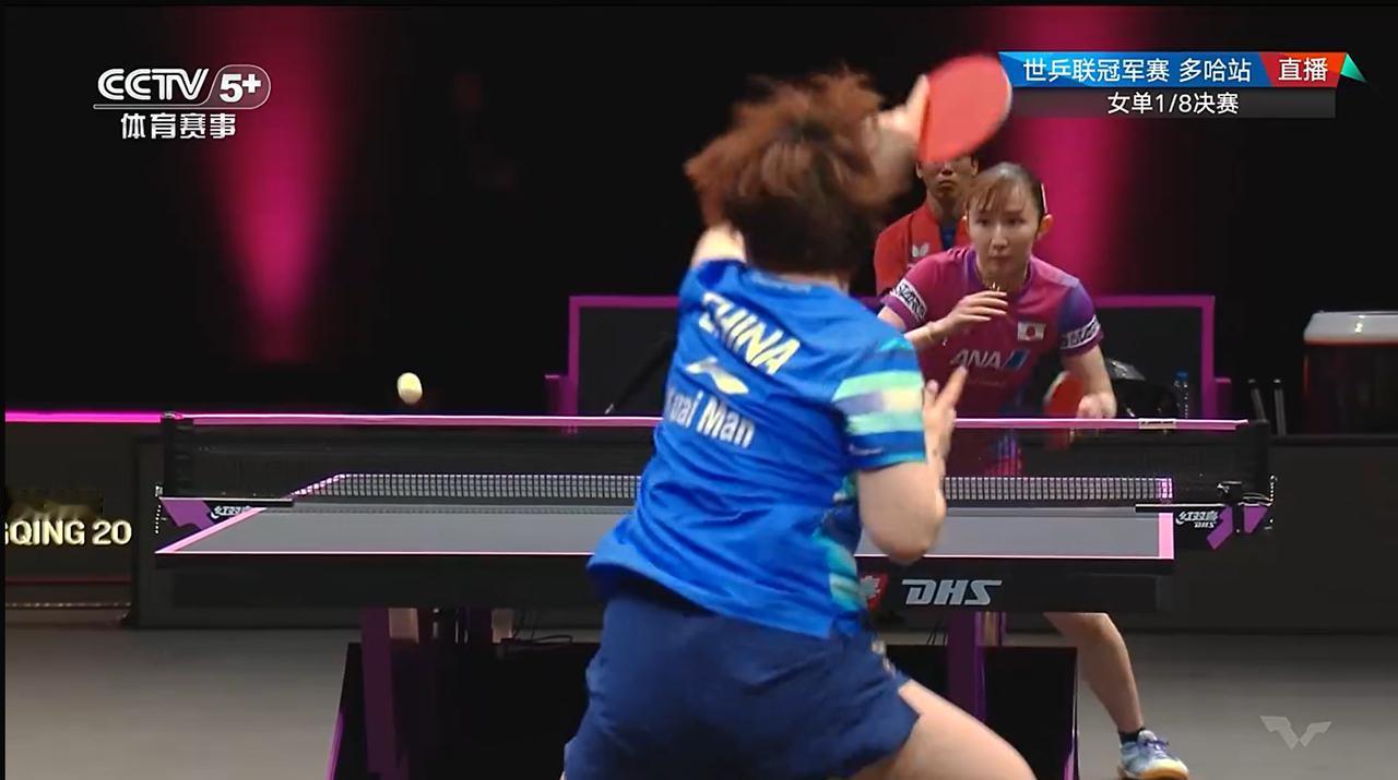 第二局是关键!早田希娜这一局没拿下,心态受到一些影响:局末,早田通过一个侧身搏杀打到9-9,然后通过一个漂亮的正手挑打10-9,但大丫头在关键分上没有手软,先是通过压早田的中间位,迫使早田降速,然后借助稳定的反手相持,打乱早田的节奏后突然大角度变线,连拿3分而获胜,压制了早田的强劲势头。 后续比赛,感觉早田希娜的发挥没有达到自己应有的水准,失误有点多,尤其是无谓失误。 以前看早田希娜打球,她的反手是比较稳的,站定后,光靠反手加力拧拉、弹击就能够打出相当高的质量,但今天,早田的反手似乎打得很别扭,没有发挥应有的威力,她的发球,节奏和落点上有些变化,应该是想尝试一些新战术,然而正如解说所言,球发出去了,但后面的第三拍没有衔接上,也就是对对方回球的预判以及回应方案的设置上没有做到位,使本来有望取得优势的发球,威力打了折扣,甚至弄得自己处于被动。 总体上,蒯曼赢在相持这一环节上,早田以速度见长,但大丫头在近台根本不落下风,而且旋转上、落点上质量优于对方。 其实早田在1-2落后时,就应该考虑采用搏杀战术了,因为第三局她也一直没能占优势,但她没有,甚至出手还有些犹豫。 恭喜大丫头,不过后面还有多场硬仗,还需要把状态继续调动起来,加油![加油]