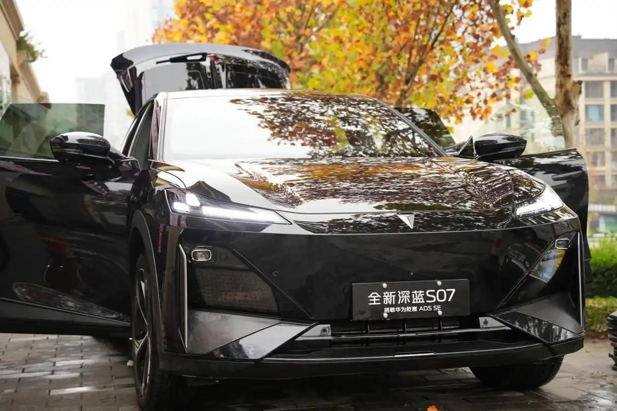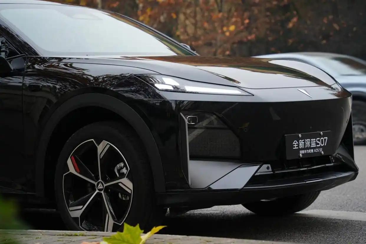 华为乾崑辅助驾驶打入15万级,全新深蓝S07有没有那么好? 前脸部分,全新深蓝S07的前脸整体呈现的是X的形状,采用了家族式的深蓝之眼日行灯,搭配银白勾边的星翼脉冲灯,力量感更强。星轨几何灯凭借激光镭雕工艺,既打造出极具辨识度的科技感灯光造型。 全新深蓝S07属于有棱有角的设计,点亮后的灯组与格栅勾勒出科技机甲感,整体造型未来感很强。 来到车侧,全新深蓝S07华为乾崑630长续航版标配了19寸大轮毂,轮毂的风刃造型又酷又带感,难怪会成为年轻消费者的心头好,设计师这波确实考虑得很周到。