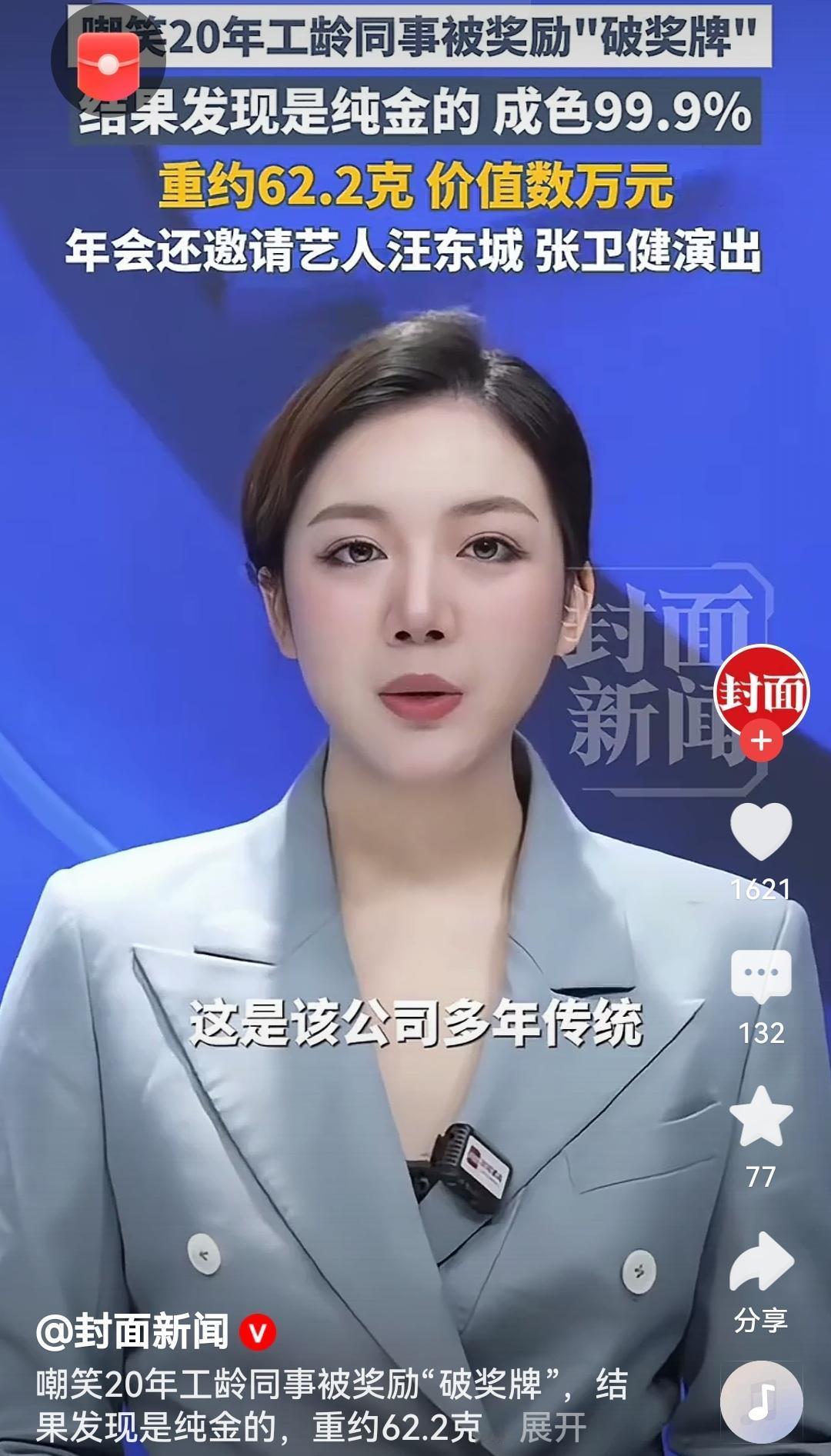 嘲笑同事的奖牌破结果发现是纯金的看似普通的奖牌,藏着企业对员工二十年坚守的珍视。这份沉甸甸的认可,不仅是黄金的价值,更是对每一份平凡坚守的致敬,太暖心了![比心][比心][比心] 员工奖牌 评论打卡任务