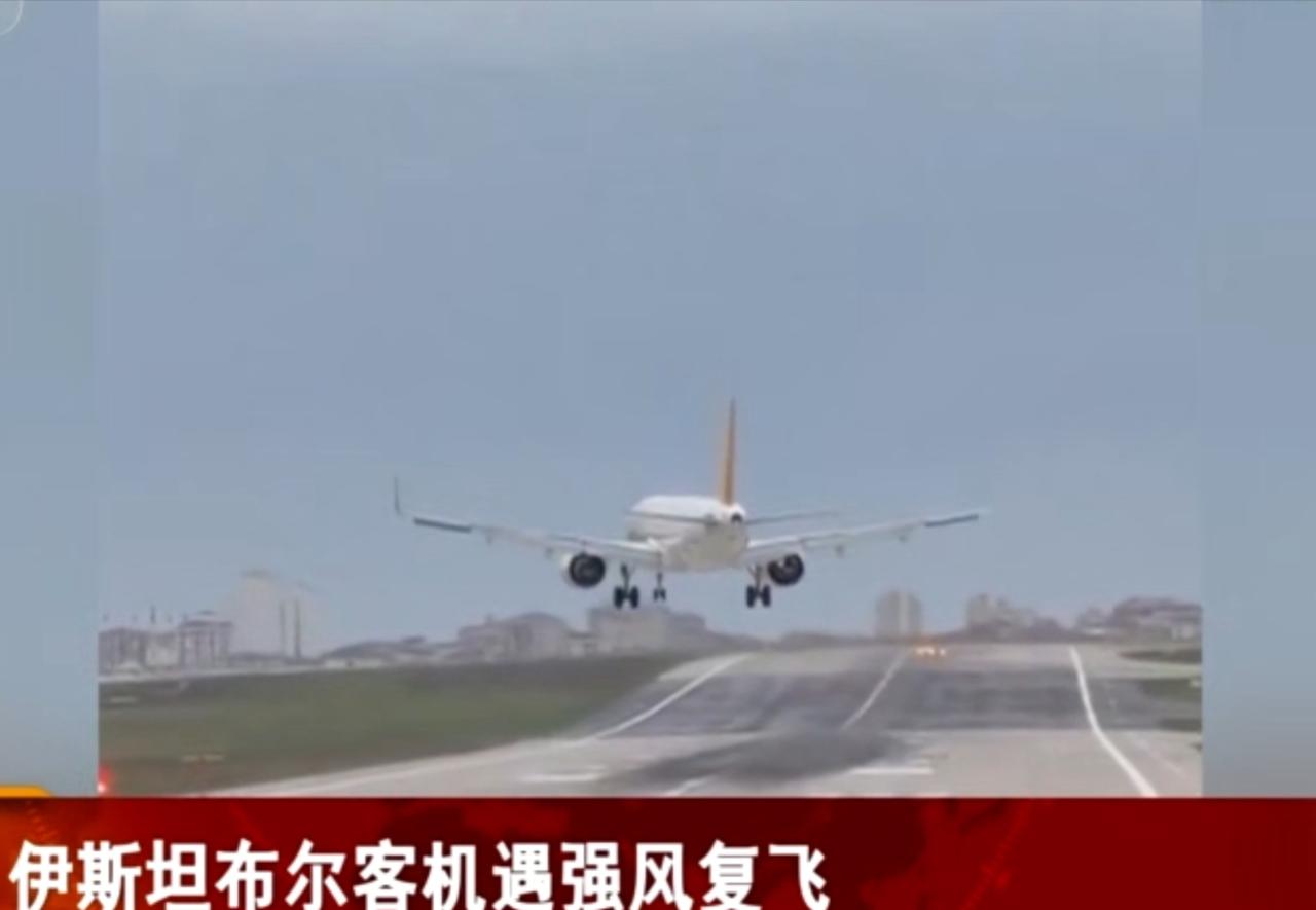 伊斯坦布尔机场的跑道上上演惊险一幕,一架客机准备降落时突遇强风,机身明显倾斜,起落架已接近跑道却始终无法平稳触地。从画面中能清晰看到,客机在低空不断调整姿态,最终飞行员果断决定复飞,飞机再次拉升冲上蓝天,背景里的城市建筑与空旷跑道形成鲜明对比,这一瞬间既展现了极端天气对航空飞行的影响,也凸显出飞行员过硬的应急处置能力和专业素养。