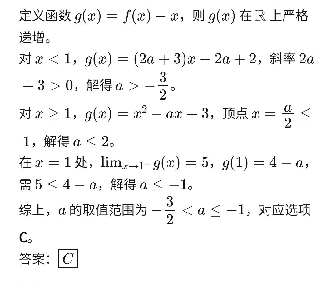 浙江温州中学2025-2026学年高一上学期期中数学试卷单选题第7题,考查了函数的单调性,特别是一次、二次函数的单调性,通过已知构造函数g(x)=f(x)–x为单调递增函数,通过分段函数的方式考查函数单调性,更加深刻。附加一个姊妹题供参考。