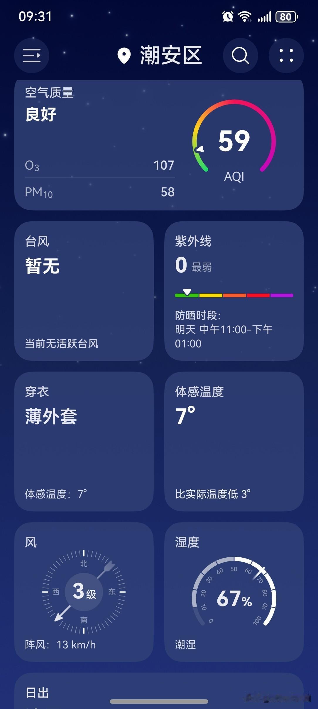 未来两天我省大部晴朗干燥,气温回升,昼夜温差大,广东人早晚冻到腾腾震! 今天(9日),我省大部晴天;10日晴到多云,气温缓慢回升,粤北市县仍有5℃以下低温,局部有霜冻;11日受弱冷空南下影响,我省大部晴间多云。早晚寒冷,需要注意根据添衣保暖哦! 今天(9日),潮州喜提一个晴天,气温5~20℃,此刻气温10℃,体感温度7℃。 今天白天气温有所上升,广东的小伙伴们集体迎来浅浅的解冻时刻!不过,早晚气温依然较低,防寒保暖措施仍需做好。 明天的气温将会继续上升,希望能够再暖一点,再暖一点!