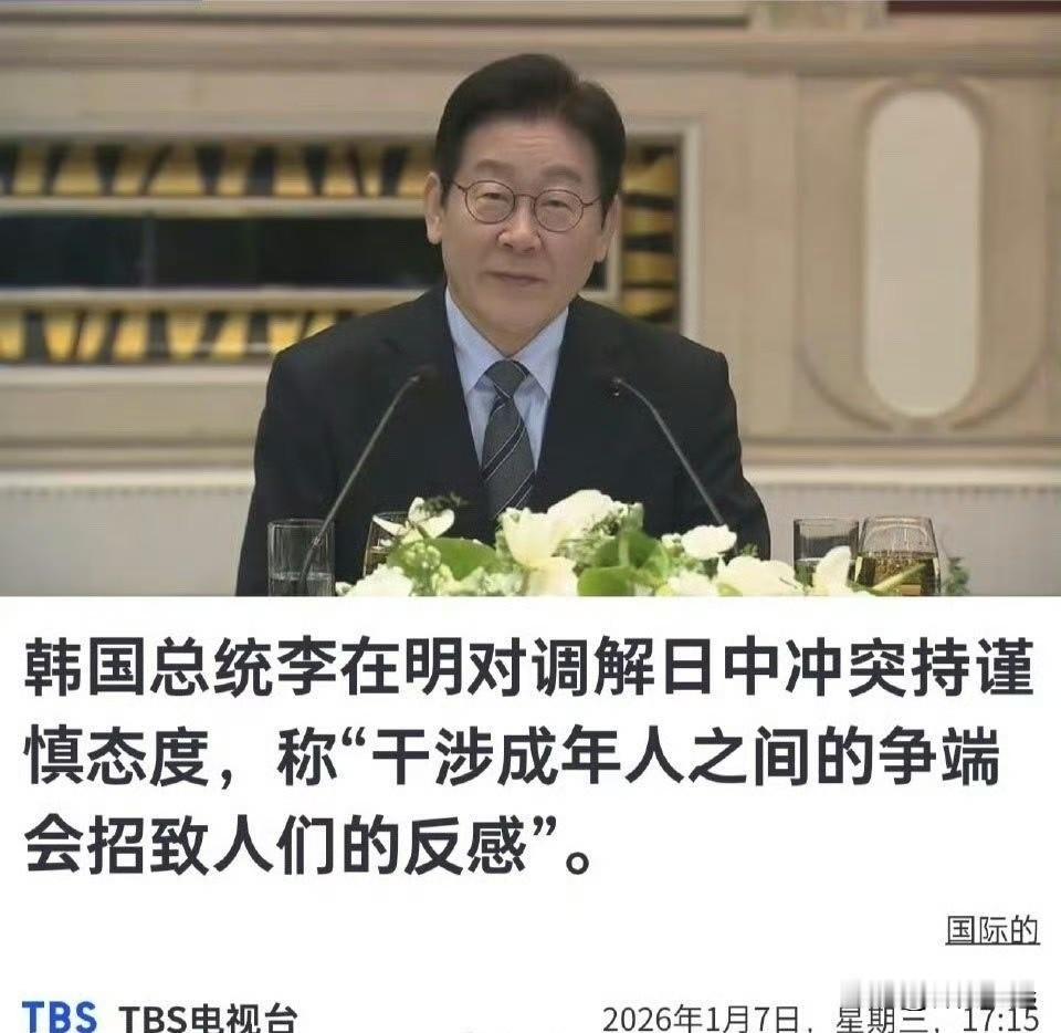 “干涉成年人之间的争端会招致反感”,李在明是聪明人!不像他那个前任尹锡悦,搞不清状况,不知道自己是谁。也不像新加坡那个黄总理,把自己当“教师爷”,大人说话他总想插两句嘴,结果就是脸被打得啪啪响。 中国商务部2026年甩出的前两道行政令精准锁死日本的命脉,中日之间的火药味早就飘满了天。这时候跳出来当和事佬,纯属找不痛快。 尹锡悦就是最好的反面教材。当初一门心思抱美国大腿,跟着日本瞎起哄,又是站队又是叫嚣,把中韩关系搅得一地鸡毛,国内的半导体和汽车产业跟着遭殃,老百姓怨声载道,最后落得个里外不是人的下场。 再看新加坡那位,更是把“尴尬”俩字刻在了脑门上。中日闹矛盾,他倒好,一边假模假式劝和,一边暗戳戳替日本说话,还大言不惭想代表东盟表态。结果东盟的柬埔寨、越南直接打脸,公开说他代表不了自己。 中国这边也压根不吃他那套,本想借调停刷一波存在感,没想到偷鸡不成蚀把米,被怼得哑口无言,脸都丢到了太平洋。 反观李在明,那叫一个拎得清。中韩经贸绑得死死的,半导体、动力电池这些饭碗级产业,离了中国市场玩不转。 大国博弈的棋局里,小国最忌讳的就是摆不正位置。与其瞎掺和惹一身骚,不如老老实实守住自己的一亩三分地,闷声发大财。 说白了,在中美日这几个大块头掰手腕的时候,小国的生存之道就俩字:别装。 李在明的“不掺和”,是精明;尹锡悦的“瞎站队”和新加坡的“乱插嘴”,那就是真傻。