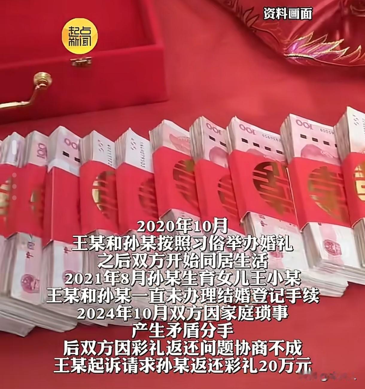 “想白嫖,哪有那么容易!”男子和女子按照老家习俗,举行了结婚仪式,但是并未登记结婚,女子搬去男子家同居生活,两人生下一个女儿。4年后,两人产生矛盾分手,双方约定女儿归女子抚养。男子说两人没有结婚,要求女子返还20万彩礼,可女子却认为彩礼已经用于两人共同生活,自己还要抚养女儿,拒绝返还。男子将女子告上法庭,法院判决结果令人意外。 2020年1月,男子王某经人介绍,认识了女子孙某。 两人见面后,彼此感觉还不错,王某跟孙某表明心意,想要跟孙某组建家庭,为了表达自己的诚意,他给了20万彩礼给孙某。 同年10月,两人按照当地习俗热热闹闹举行了婚礼,共同期待着以后的日子能够过得幸福快乐。 举行完婚礼后,孙某搬去跟王某同住,虽然两人办了婚礼,但是却一直没有去登记结婚。 2021年8月,孙某生下一个可爱的女儿,王某看着女儿粉嘟嘟的小脸,心里别提多高兴了,觉得自己肩上的责任更重了,工作也更有干劲了。 孙某也沉浸在初为人母的喜悦中,精心照顾着女儿,一家三口的日子,虽然偶有磕绊,但是也算幸福,可两人依旧没有去办理结婚证。 2024年10月,王某和孙某因家庭琐事发生激烈争吵,一气之下,两人决定分手。 分手后,两人约定:女儿归孙某抚养。 可就当孙某以为两人就此分道扬镳,各过各的,可王某却提出:因两人没有登记结婚,孙某需要把20万彩礼返还给他。 孙某傻眼了:自己跟王某在一起共同生活4年,这4年里,两人一起过日子,柴米油盐哪一样不要花钱,还有孩子的奶粉、尿不湿,彩礼都用于日常开销和孩子身上了,自己哪有钱还给他。 而且分手后,女儿归自己抚养,自己一个女人带着孩子,生活已经不容易了。 凭什么自己跟王某以夫妻名义生活4年,生育子女,到头来自己还要把彩礼返还给他,这对自己也太不公平了,她拒绝返还彩礼。 王某一纸诉状,将孙某告上法庭,要求她返还20万彩礼。 有人说支持女方不退彩礼,两人同居生活4年多,还生了一个孩子,如果这20万用于家庭开支和孩子身上,不用退。 也有人说如果这20万彩礼给了女方娘家,或者被娘家人用了,那应该退回来。 从法律角度来说,该如何看待此事呢? 彩礼是指婚姻关系当事人一方(主要指男方)及其亲属,依据习俗向对方(主要指女方)及其亲属给付的钱物。 《民法典》第1042条规定:禁止包办、买卖婚姻和其他干涉婚姻自由的行为,禁止借婚姻索取财物。 法律禁止以婚姻为借口索取高额财物,但对于正常范围内的彩礼是不禁止的。 彩礼在性质上是属于“附解除条件的赠与”,是以缔结婚姻且共同生活为生效条件的,如果两人最终没有结婚,彩礼是可以要求返还的。 《最高人民法院关于适用〈民法典〉婚姻家庭编的解释(一)》第5条第1条规定:当事人请求返还按照习俗给付的彩礼的,如果查明属于双方未办理结婚登记手续,人民法院应当予以支持。 王某和孙某虽然举行了婚礼,且两人共同生活了4年,但是两人并未办理结婚登记手续,因此两人不属于夫妻关系,但从这一点,两人确实符合“双方未办理结婚登记手续”这一情形。 但是法院在判决是否需要返还彩礼时,还会综合考虑双方共同生活的时间、是否生育子女、彩礼的使用情况以及双方的经济状况等因素。 虽然从法律条文上看,王某有要求返还彩礼的权利,但在实际生活中,两人虽未领证,但是以夫妻名义共同生活4年,且育有子女,彩礼部分用于家庭生活开支,分手后,孙某独自抚养女儿,在这种情况下,还要求孙某返还彩礼,不符合公平原则。 最终,法院驳回了王某的诉求,孙某无需返还彩礼。 男女双方在组建家庭时,一定要及时办理结婚手续,通过结婚登记,男女双方才能成为法律上的夫妻,享受和承担夫妻间的权利和义务‌。 《民法典》第1049条规定:要求结婚的男女双方应当亲自到婚姻登记机关申请结婚登记。符合本法规定的,予以登记,发给结婚证。完成结婚登记,即确立婚姻关系。未办理结婚登记的,应当补办登记。 没有结婚证的“婚姻”,在法律上只能被视为同居关系,同居关系不受法律保护,当事人的权益难以得到充分保障。