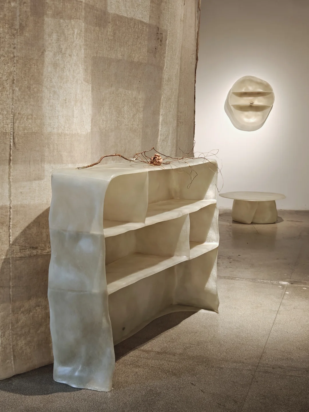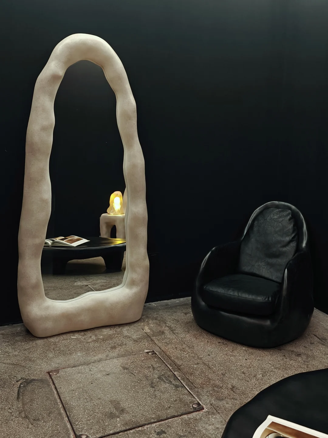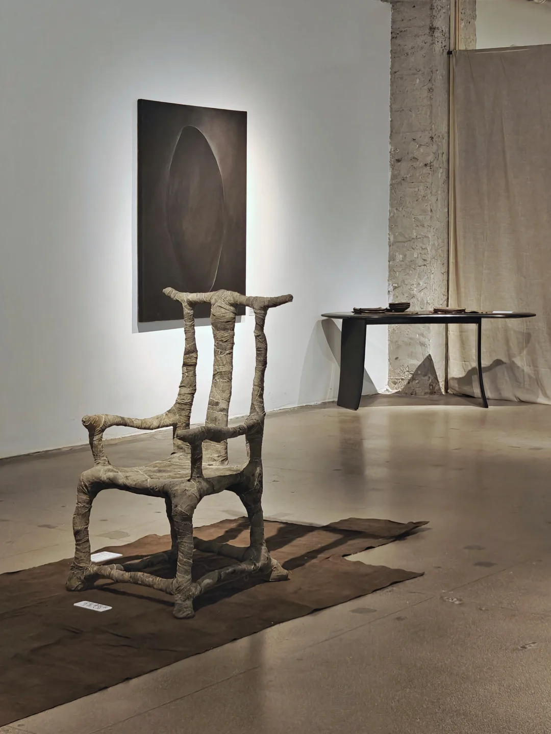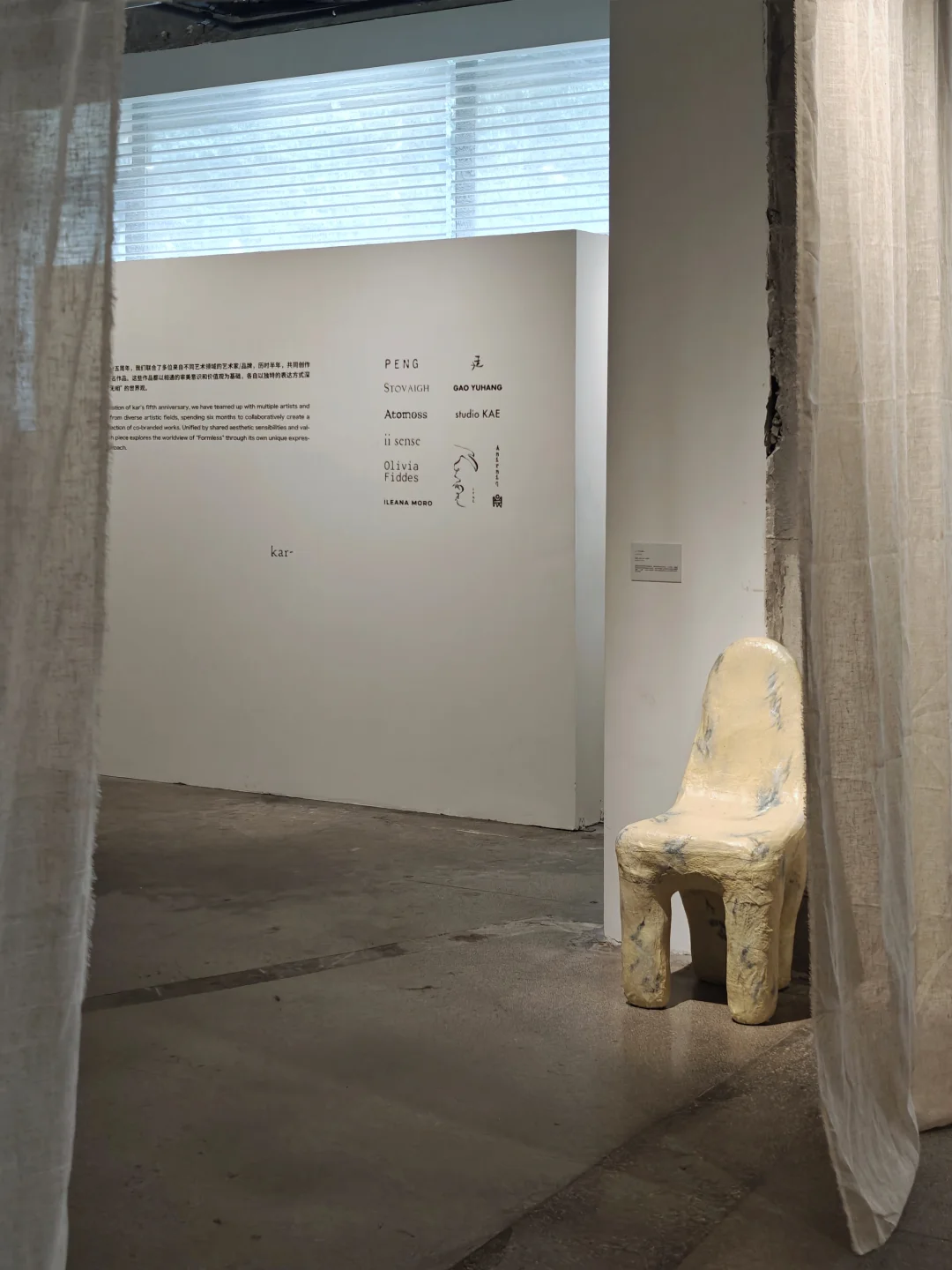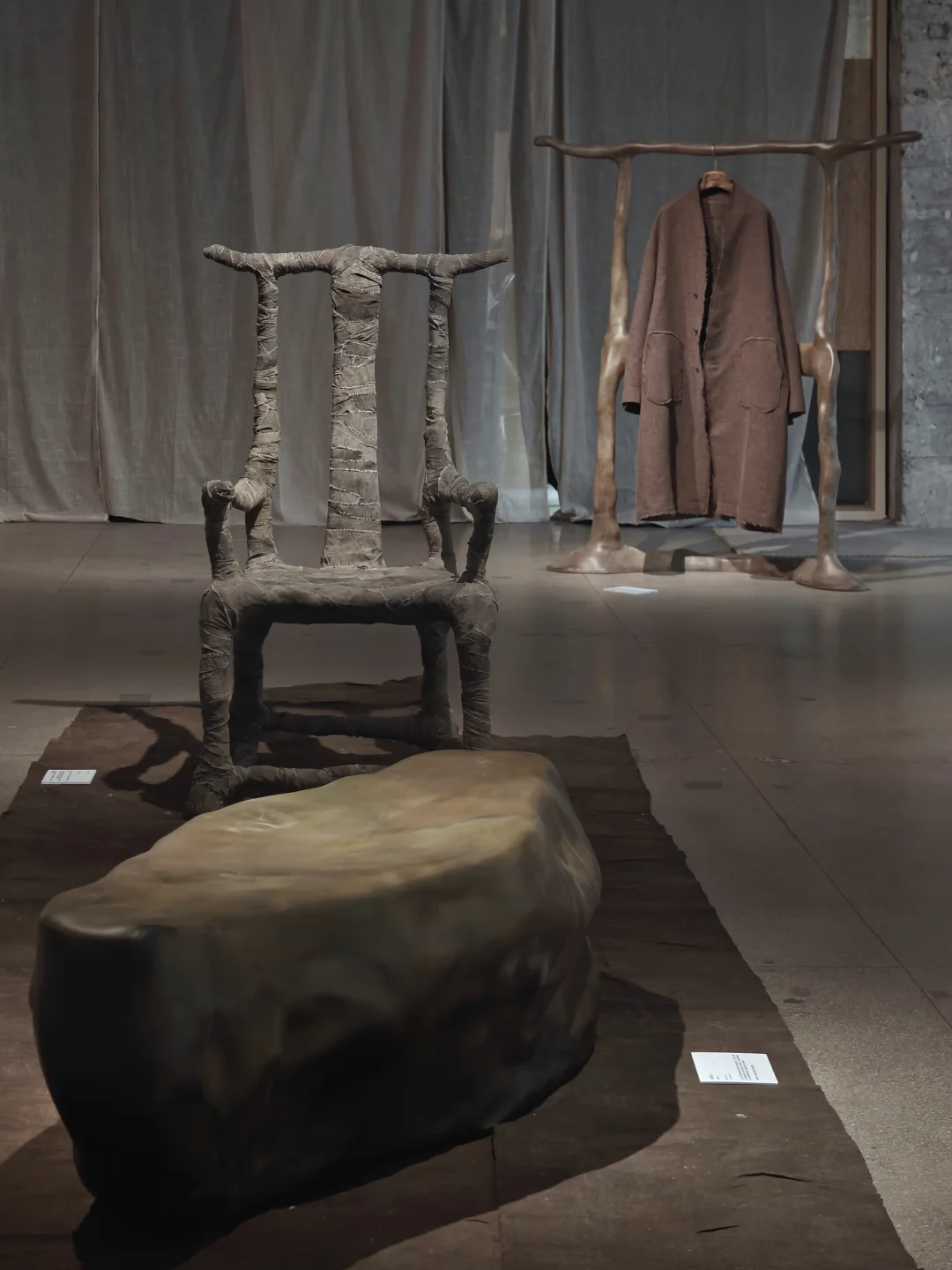无相 📅2026年1月4日🔚 📍 北苏州路河滨大楼370号 🎫 🆓需🐟约 🪑(源自梵文Karma,寓意因果轮回。以“东方美学”为核心,致力于以东方之心述当代之形) 🟤认识kar是在septieme的特展上,后来又在广州沙面的老洋房里逛到了它家的美学空间,它家的家具极具特色,说是家具不如说是一件原始艺术雕塑,就好像博物馆中石器时代先民手工捏成的陶塑小物件的放大版。 🟤如今品牌也五周年了,最近在我常去的gallery101作了一个五周年纪念展,展出联合来自不同艺术领域的艺术家和品牌历时半年共同创作的「无相」家具系列。 这个系列灵感来源于《金刚经》的“凡所有相,皆是虚妄”,强调“无相”概念——如流水般不拘形式,追求自在流转。通过不规则、随性的家具设计,表达人心中自然情感的流动。 🟤单层树脂纤维材质在光影下呈现出虚无缥缈的视觉效果。两种色系各有千秋,苔棕色沉静如青苔隐于泥土,透出大地生机;白玉色温润似月光浸玉,蕴含神秘气息。 🟤手作痕迹被刻意保留,可见的“瑕疵”体现不完美主义美学:心中若无预设的完美“相”,便无所谓不完美。这一理念不仅适用于物,也隐喻人生。 🪑疏林秀石 | 区廷柱 × kar 茶几设计灵感来自东方山水画,通体以赭绿大漆包裹,如疏林中的秀石,象征山水永恒。作品反思历史消亡后文人归隐山林的意境。 🪑Eternal Wrap | PENG × kar 以一把未发布的kar式官帽椅为“骨骼”,用艾草浸染的古董真丝手工包裹缝制。灵感源于古埃及用亚麻布包裹珍爱之人以求永恒的传统,椅子超越坐具功能,成为一件值得珍视的“木乃伊”式艺术品。 🪑One and all Form 一与万物 | ii sense × kar 通过服装设计的叙事手法,探索画布的正负空间,以“立裁”技术将椅子视为套装,展现从平面到立体的雕塑过程。色彩与笔触回眸以往联名系列,形成共鸣。 🟤展览同时呈现多个衍生系列,进一步拓展“无相”美学。非刻意而为之系列的Round Table、Knead Mirror、The Cave Table Lamp,强调自然随性的设计;甲骨文系列则将中国蕞古老的文字艺术以抽象简约形式凝存于家具中,延续当代审美表达。 💗关注我,每天带你免费看展💗 给艺术一点时间 艺术发光计划 上海周末去哪儿 抬头看艺术 让艺术生活自然发生 带你云看展 上海看展攻略 小众展览 跟我去看展 艺术展打卡