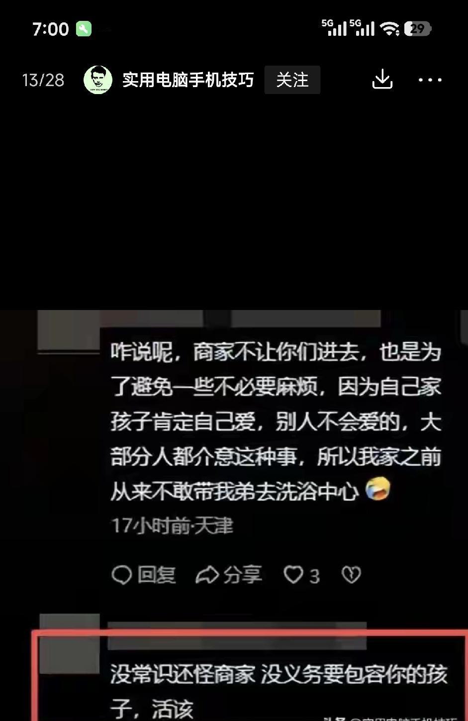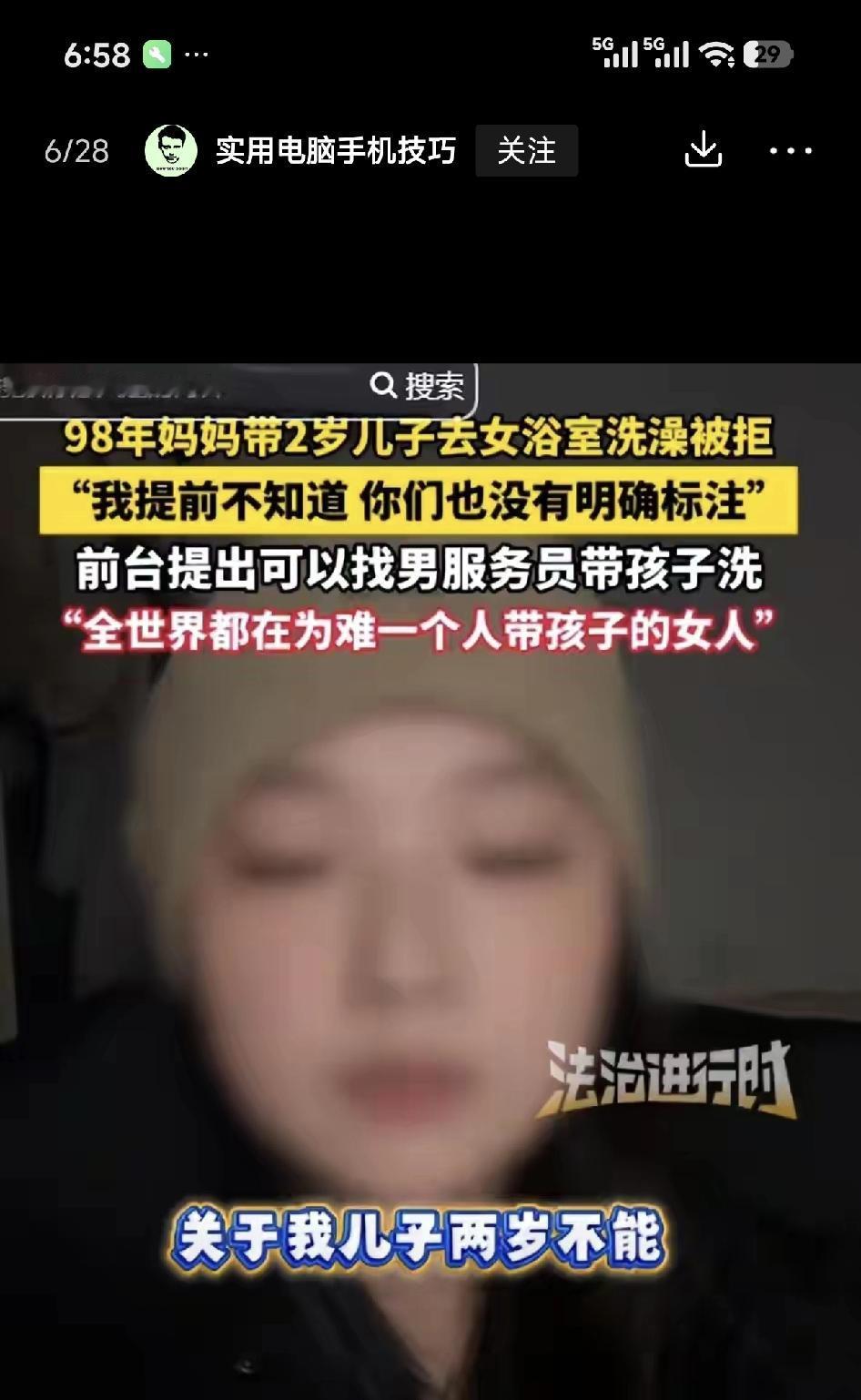 两岁男孩子能不能去女浴池洗澡。咋说呢,男孩没有爸爸吗?如果没有,就说如果没有,在家洗就好了。农村烧暖气,城市开空调打地暖。洗不坏的。小时候穷成啥样了,照样给活。 为啥惦记着去膈应人呢?被一个会直立行走的小男孩,各种瞅,别扭不?难受不?其实以前住农村的,也有带小男孩进女浴池的,那时候人都比较大大咧咧,也不是太在意。长得跟他妈妈都一样。也没啥不能接受的,何况他小时候没啥记忆。长大了啥都懂了,也没什么了。 但时代不一样了,现在大家都注重隐私,生活压力还大,不想被人看到,小异性也不行。没必要去难为商家。你这不是不能解决的事情。你还可以多花点钱,洗单间。不是全世界都在为难你,是你仗着自己是宝妈,强行让别人隐忍你,给你让路。凭什么。