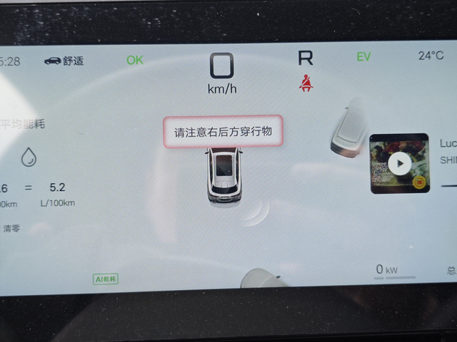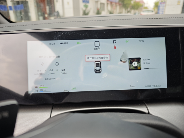 开着宋L遇到了倒车时候的紧急制动 我在倒车的时候它会有语音提示,请注意右后方的穿行物,仪表盘上也有这个提示语,当时我倒车后方是有电动车和电三轮经过,刚开始我看着他们距离我还远,我就继续倒,没想到他直接紧急刹停了,主要是电动车骑的挺快,这个功能是我第一次遇到,沙亭的那一下还有点儿惊讶,我还说我没有踩刹车,他为什么会停?后来一想原来是自动刹车的功能,市区里非常堵,对于我们混动车来说算是比较友好,比如我开了3km市区足足开了25分钟,重要的是它一共消耗了0.5度电,也就是两毛多钱就够了