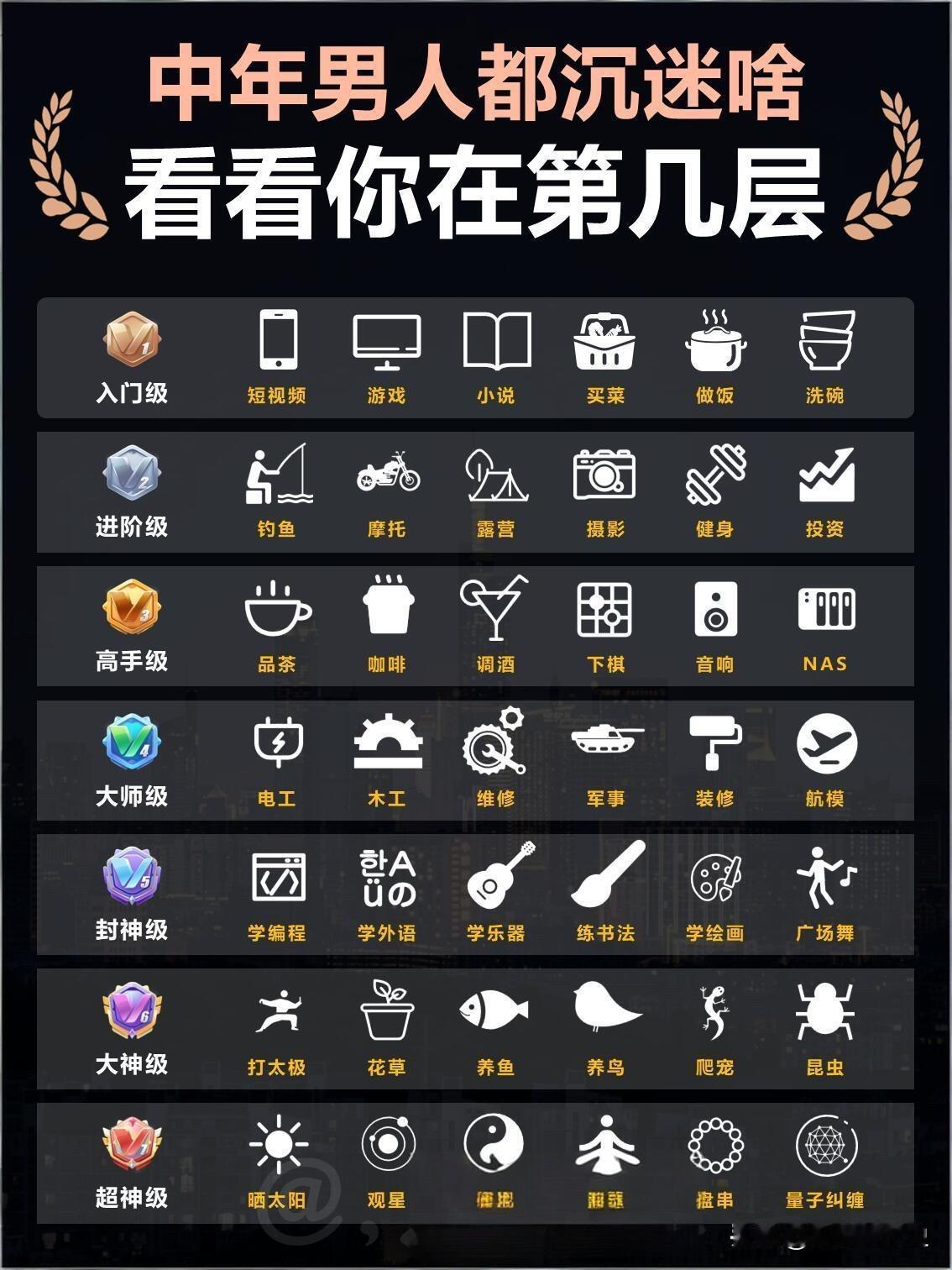 人到中年的你们都在沉迷什么?看看你们属于什么级别?[大笑] 中年标配 80后 中年状态