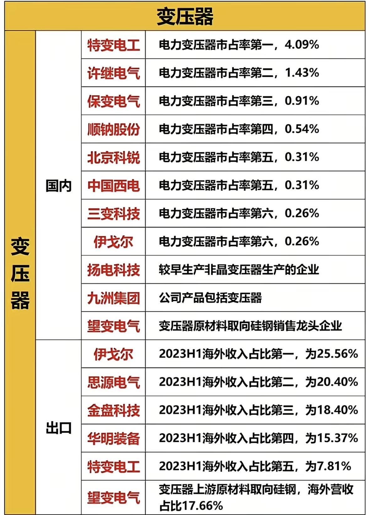 2025年海外收入占比最高的10家变压器企业 国内变压器企业竞争激烈,特变电工领跑市场,许继、保变紧随其后。海外业务成新增长点,望变电气出口占比最高,思源、金盘表现亮眼。