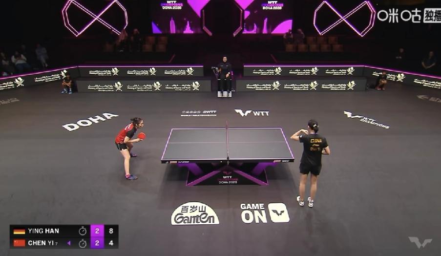 陈熠2:0到2:3韩莹,女线出局一位 韩莹宝刀不老 削球老道 但看不懂的是陈熠的正手,突然就离家出走了 决胜局叫完暂停没有起到任何效果 心态和技术都要再练。
