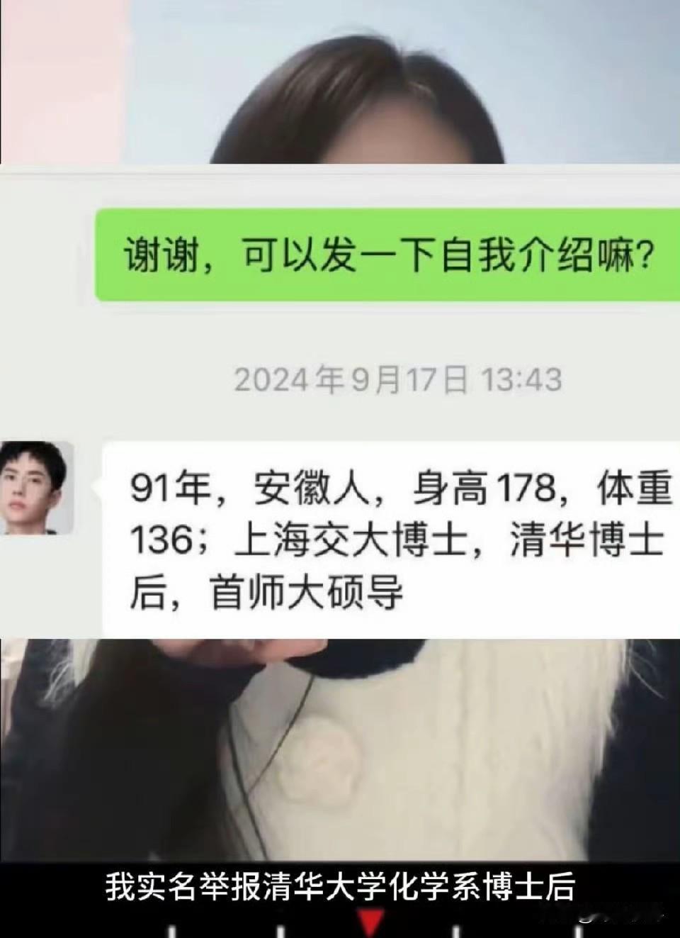 女子实名检举清华大学化学系博士后婚内出轨,985博士后竟在妻子孕期出轨,还欺骗他人感情! 妻子孕期惨遭背叛,被蒙在鼓里的女生抑郁维权,他却连一句道歉都没有?高学历配上如此恶劣的人品,这操作实在让人作呕! 实名举报的女子所求并非报复,只为解开心中郁结,求得一句道歉!