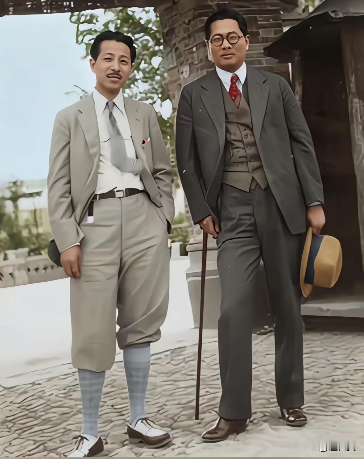 30年代,两位异姓兄弟的合影,穿着打扮非常时尚,其中,左边的那位,为新中国成立作出巨大的贡献,你们认可吗?