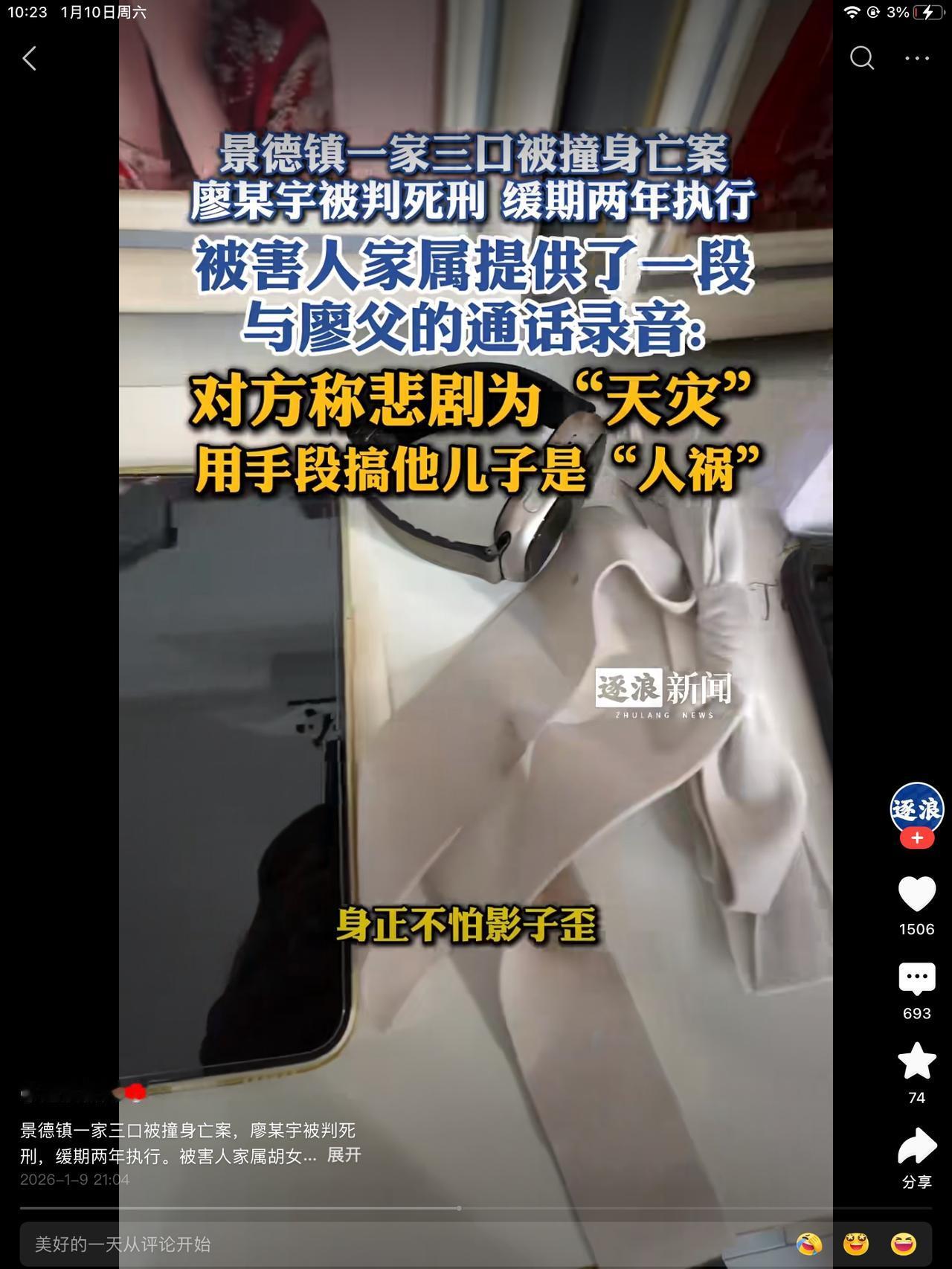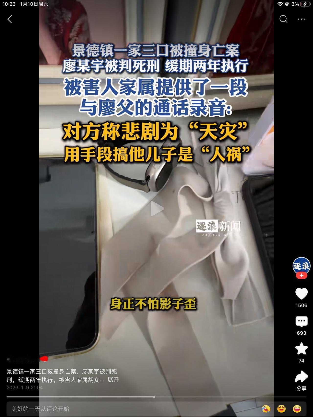 这个爹真猛啊!他儿子是儿子,别人儿子孙子儿媳妇就不是了。他儿子撞人家一家三口,没一个活命的。他儿子想活,就活了。据说今年22出来39。这不道是谁算的,依据是什么。反正有些可能吧!人家说,他出来,还有生育能力,不耽误结婚生子。一辈子,还有后半生可以过日子。 人家受害者就没啥希望了。两代人都折在事故中了,剩老两口子,能干点啥。给把刀都挥舞不动的年纪了,太可怜可悲可叹了。 这个爹口气还这么重,这么凶。人家人没了,是天灾,他家儿子人家想让他不留命就是人祸。用手段搞他儿子。就是他这幅德行害了他儿子,他都不知道。