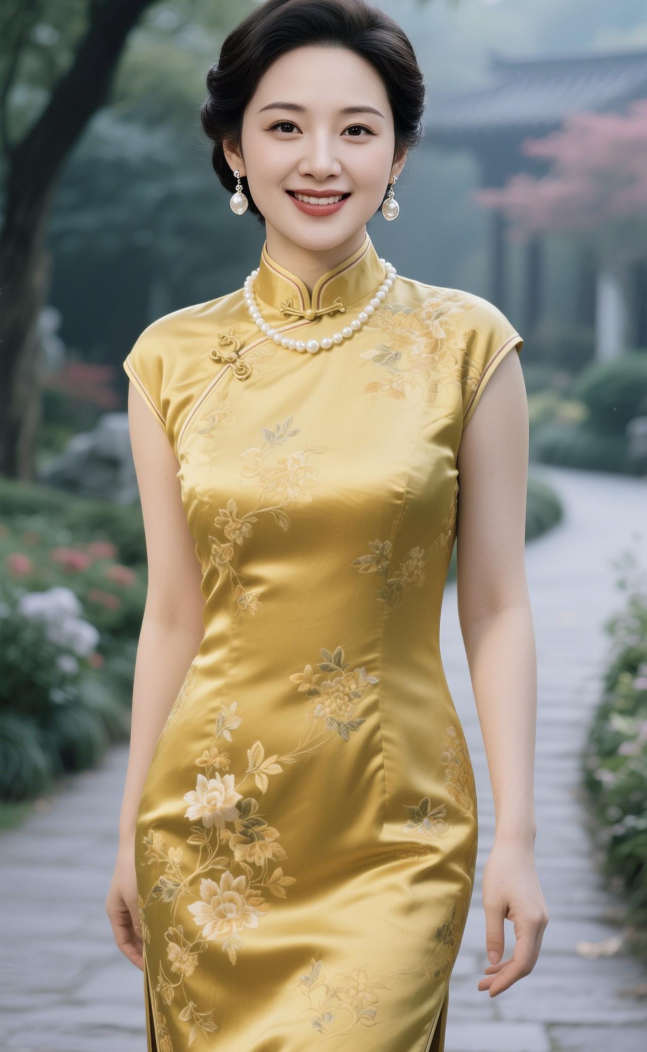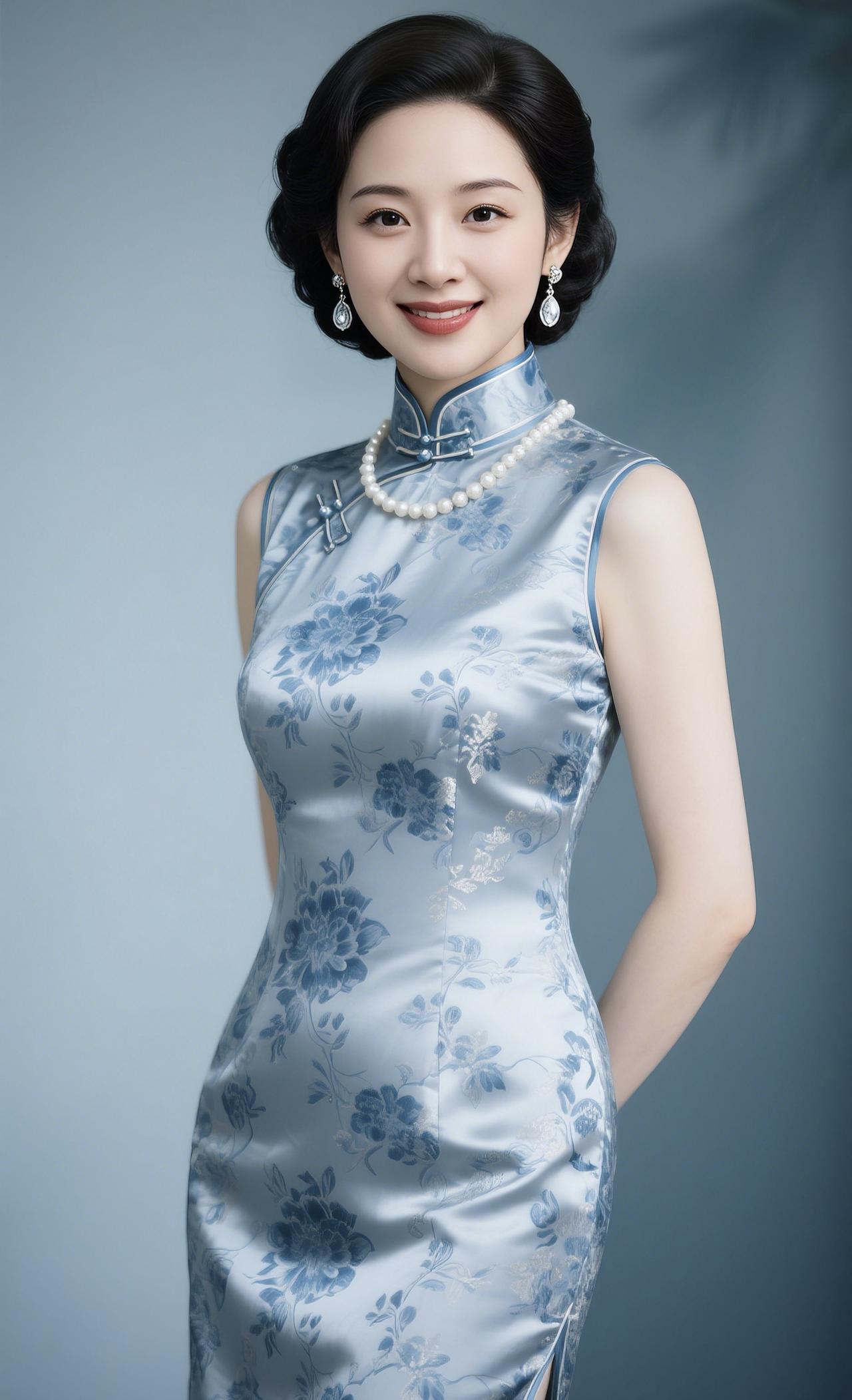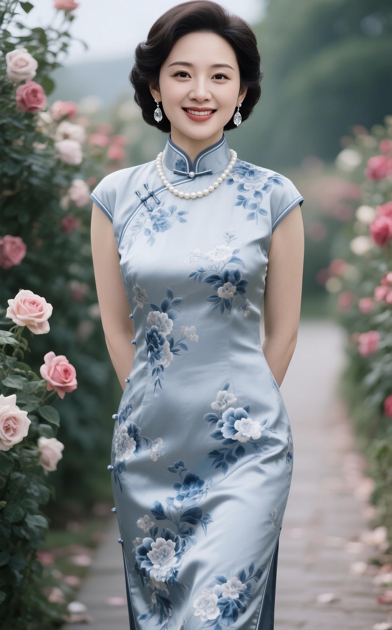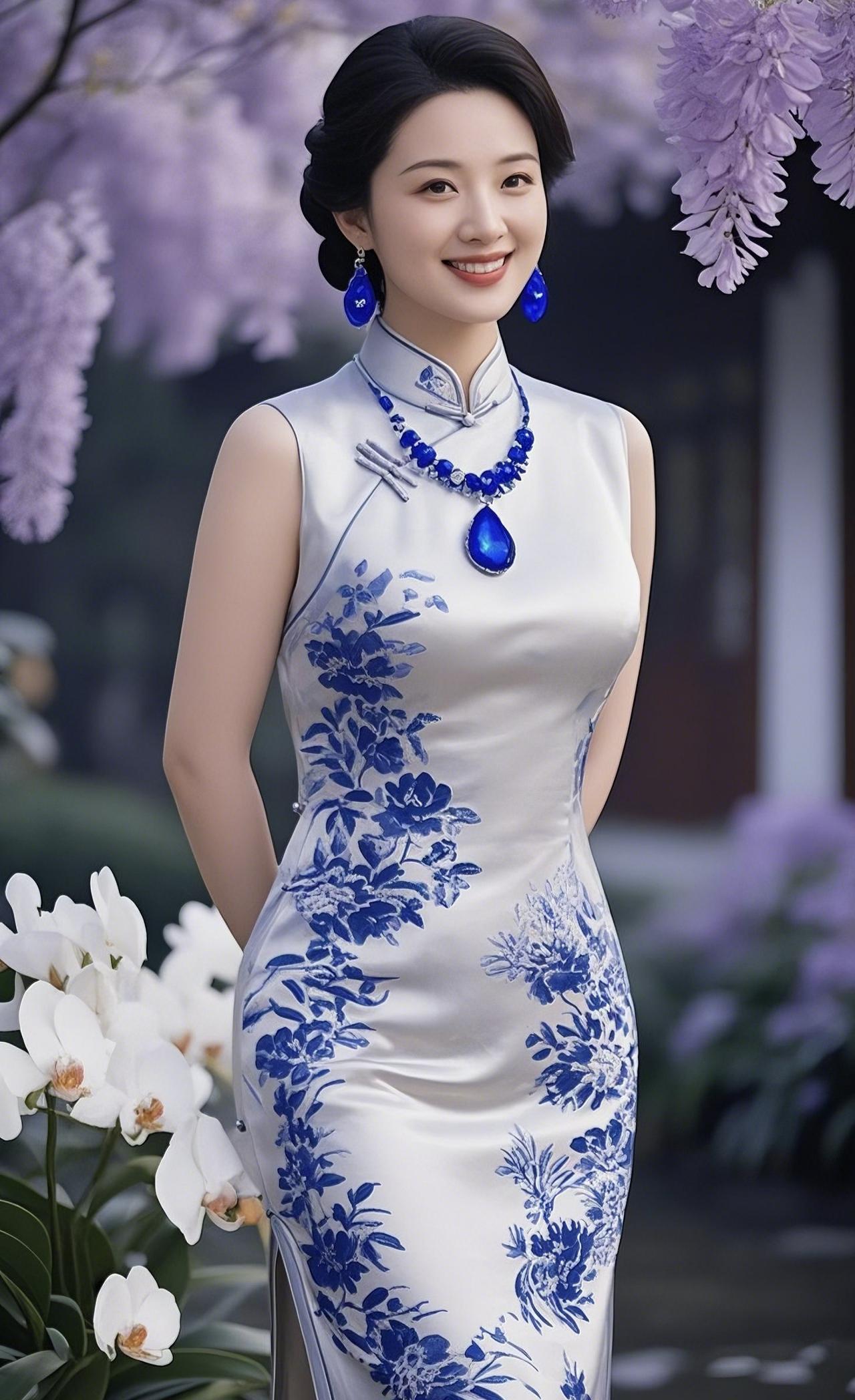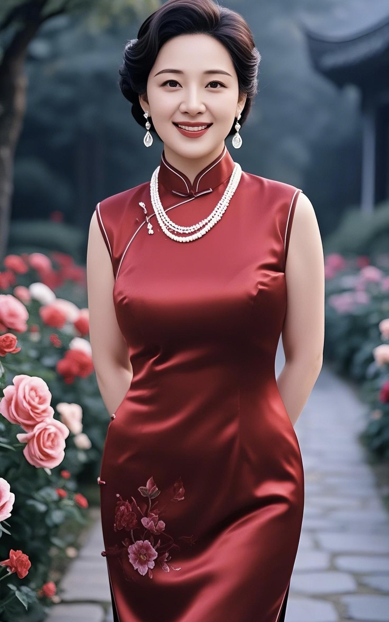 《一襟旗袍,半阙宋词》 裁一尺江南的云,缝进立领的弧度 盘扣咬着月光,像宋词