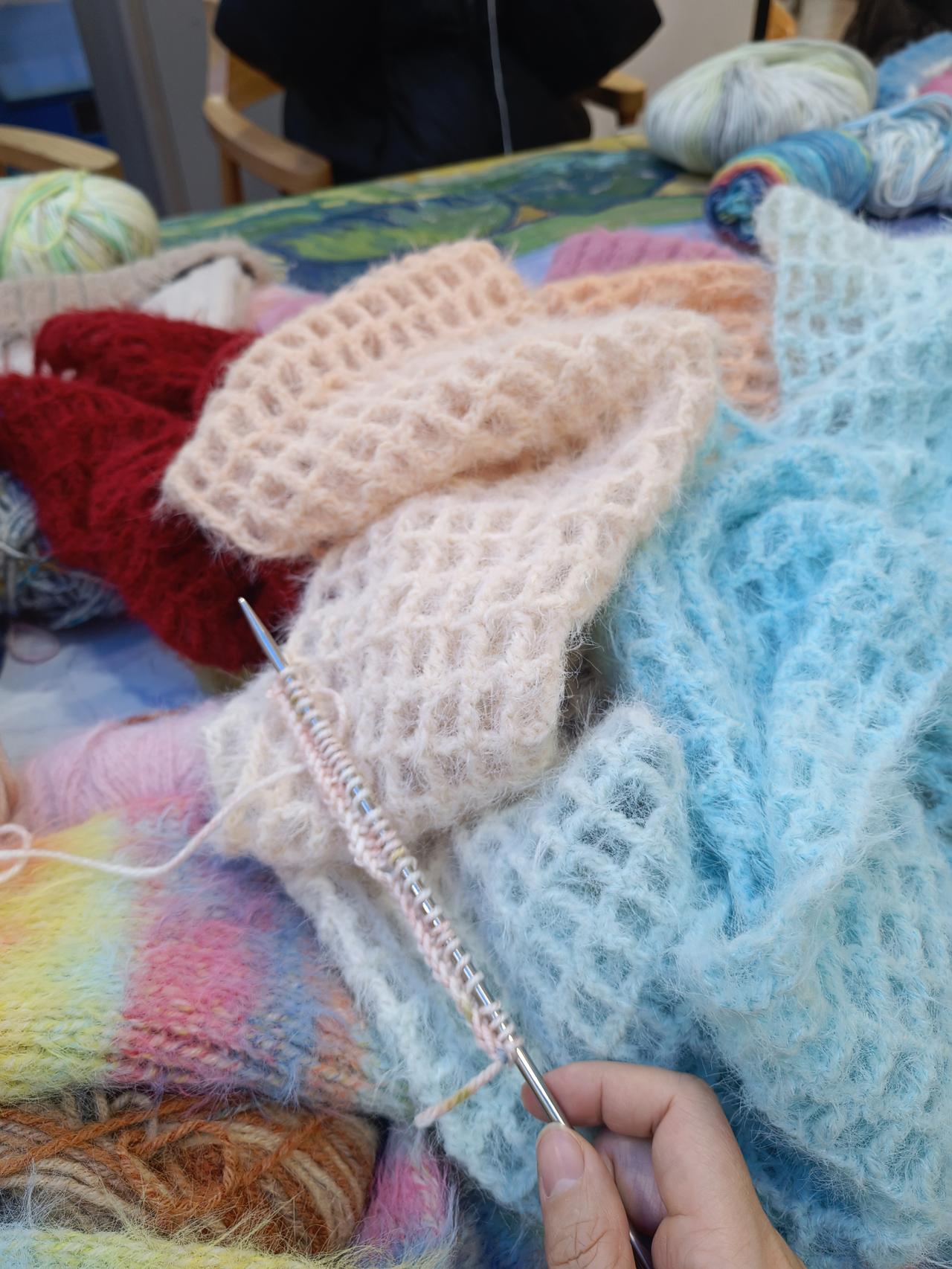 看看这是什么?昨天女儿在读书馆里看书,那里正好举办针织体验,老师看我无聊便邀请我