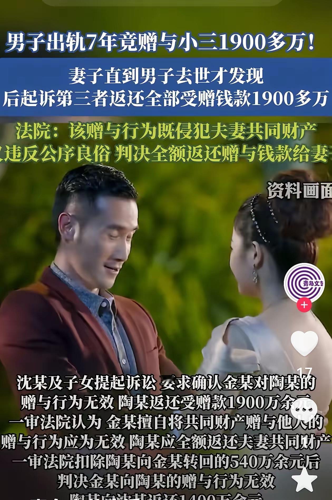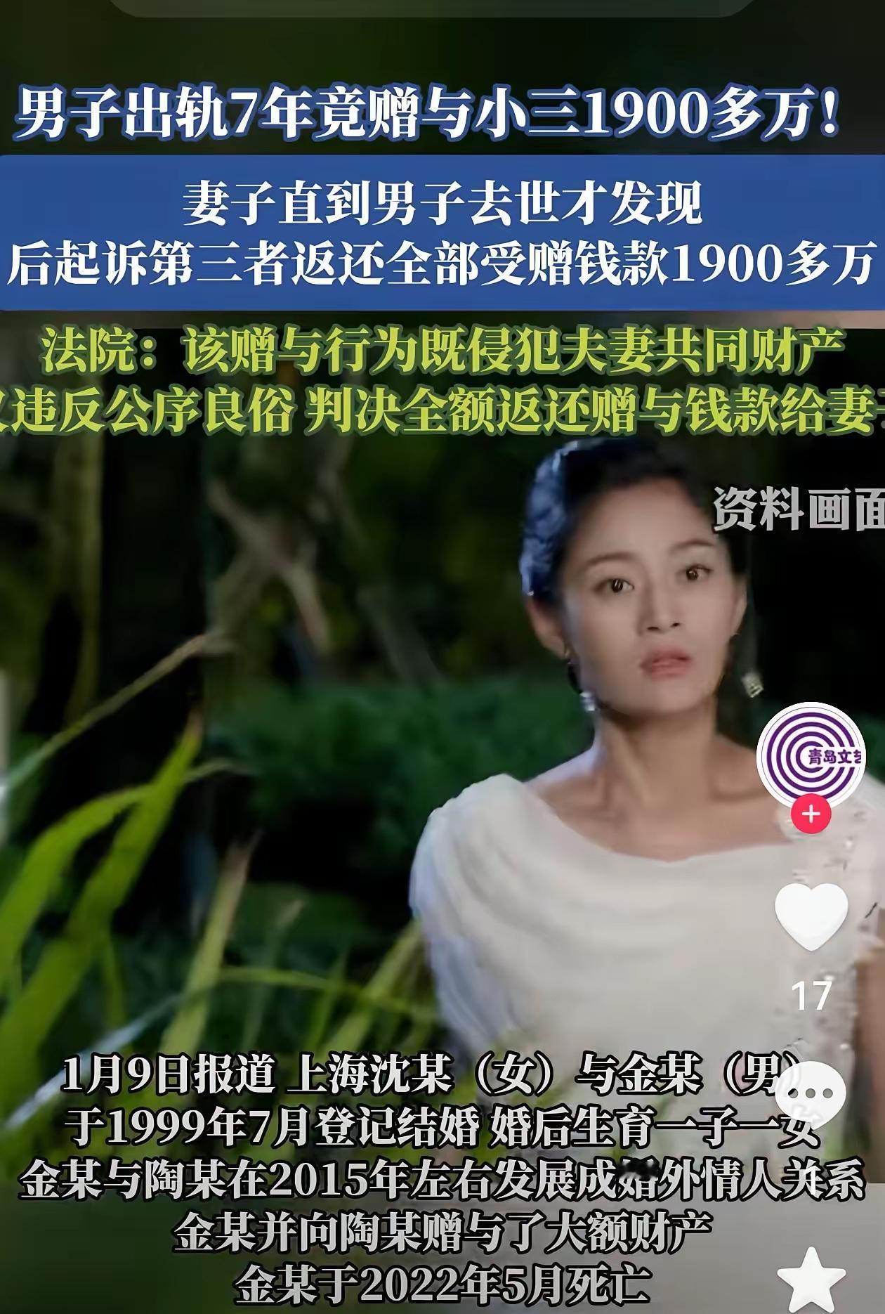 这起案件再次彰显了婚姻制度和法律对于维护家庭财产权益的严肃性与权威性,也提醒我们关于道德、法律与责任之间的关系。以下是对此事件的分析与思考: 一、案件概要 主要人物: 沈女士:丈夫金先生的合法妻子,有一儿一女。 金先生:已故,婚内出轨并涉嫌将夫妻共同财产赠与情人陶某。 陶某:金先生的情人,担任受赠人。 事件经过: 金先生婚内出轨7年,期间向陶某转账约1900万元。 金先生去世后,沈女士发现婚外情及大额转账,提起诉讼。 一审法院认定赠与行为违背公序良俗,全部无效,判决陶某返还1400万。 陶某不服,提起上诉,二审判决维持原判。 二、法律分析 共同财产与赠与的本质: 根据《民法典》规定,婚姻存续期间所得财产属于夫妻共同财产。未经配偶同意,擅自处分共有财产,尤其是在违背公序良俗的情况下,是无效的。 违背公序良俗的界定: 违反婚姻忠实义务、隐瞒事实、大额转账,均属违背公序良俗的行为,依法应认定为无效。 赠与行为的法律效力: 全部赠与行为因违反法律规定与道德底线,被认定为无效,不影响财产的返还。 一半所有权的争议: 虽然夫妻共同财产原则上一人一半,但在本案中,因赠与明显违反法律及公序良俗,赠与行为自始无效,返还全部1900万符合法律精神。 三、伦理与道德层面 道德底线的重要性: 金先生的婚外情和私自转账,严重背离忠诚与责任,既损害家庭,也冲击社会伦理。 对情人的影响: 陶某长期接受财产,理应认识到对他人家庭的伤害,虽然在法律上有关责任,但道德责任更为重要。 作为社会个体,应坚守底线,尊重他人家庭,追求真挚而光明的感情。 四、社会启示 保护家庭财产,法律应给予坚实保障。 婚姻关系中的忠诚与信任,无法用金钱弥补。 公众应重视婚姻的道德责任,避免为一时的私欲破坏家庭幸福。 五、结语 家庭是社会的基本单位,尊重和维护婚姻的忠诚与财产安全,是每个人应尽的责任。此次判决不仅明确了相关法律规定,还彰显了对婚姻稳定和公序良俗的坚决维护。希望每个人都能在遵守法律和道德的前提下,追求幸福,守住底线。 若你需要进一步了解相关法律条文,或者关于婚姻财产保护的案例分析,欢迎随时提问。婚内致死案 婚姻财产真相