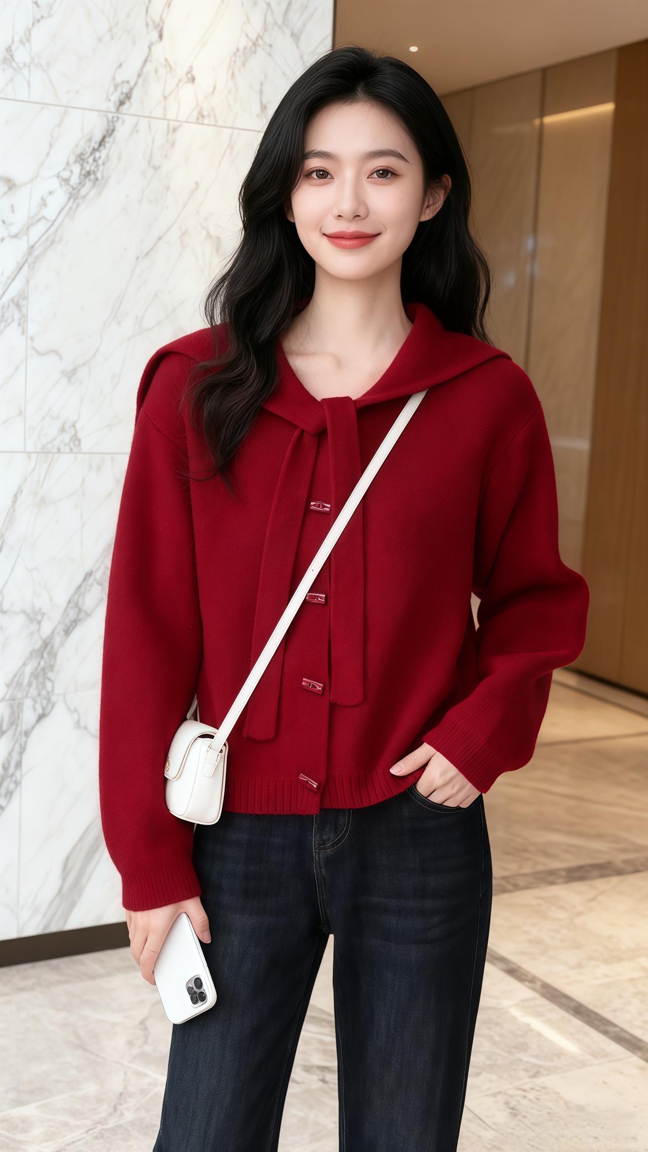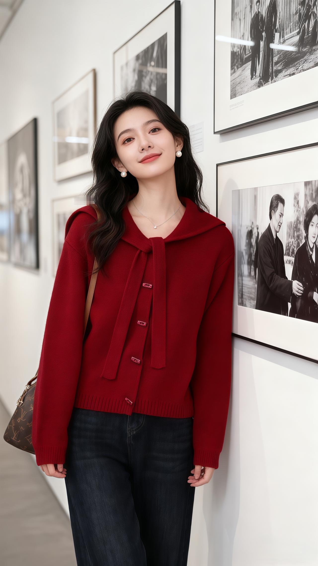 毛衣 红毛衣女款高级 新年穿搭 女装 红色毛衣太好看了