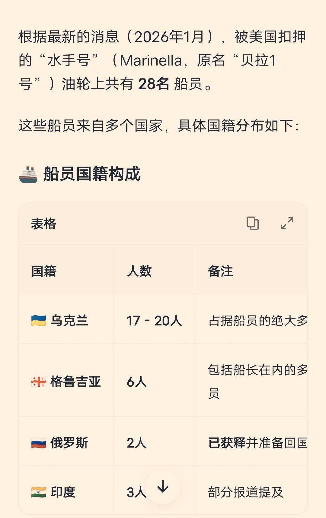 一群乌克兰人,领着几个俄罗斯人格鲁吉亚人印度人,一起倒运石油,这个世界真是太魔幻了[捂脸] 根据最新的消息,被美国扣押的“水手号”(原名“贝拉1号”)油轮上共有28名左右的船员。 其中包括17—20名乌克兰人,6名格鲁吉亚人,2名俄罗斯人和3名印度人。 在俄罗斯外交部交涉后,特朗普已下令释放两名俄罗斯公民。俄方对此表示欢迎,并正在安排他们尽快返回祖国。 而其他人就没这么幸运了。包括乌克兰公民、格鲁吉亚公民和印度公民在内的其它船员仍处于被扣押状态,美方此前曾表示可能会将他们带往美国接受审判。 据了解,乌克兰驻美大使馆已证实船上有其公民,并向美国国务院申请领事探视权,但目前尚未收到明确回应。 这群欧美国家,表面上打的不可开交,私下里却团结一致倒卖石油,真的是让人开了眼界了[捂脸]