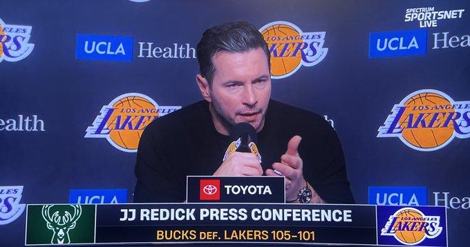 雷迪克称自己叫了暂停,但他们没有听到。自己应该跟裁判说如果投篮不进就叫暂停的。 湖人和雄鹿的比赛最后16秒的时候,詹姆斯持球,气喘吁吁的詹姆斯,本来雷迪克是时候叫暂停了。让詹姆斯休息一下。但不知道是詹姆斯还是雷迪克出现问题了。 雷迪克赛后说:“在那种情况下,叫暂停需要遵循一定的流程。比赛结束的时候,首先要告诉裁判,投篮命中或未命中,我都要叫暂停。东契奇犯满离场。我不是在找借口,我换上了东契奇的替补。不有一次投篮机会,我们知道暂停时间很短,还有16秒,我们球队还要2号位,3号位,感觉时间足够进行2号位的更替,我们来演练一下,因为雄鹿投篮不中。我立刻跳起来叫暂停,但他们没有听到,这已经是本赛季第三次发生这样的情况了,是我的错,我漏掉了一个步骤跟裁判预先说,我们在多伦多这样赢得过一场比赛。本来按照流程我应该跟裁判说,但我没有做这个第一步。我承担责任。” 似乎雷迪克正在失去更衣室的控制,连叫个暂停,球员都没有理会。