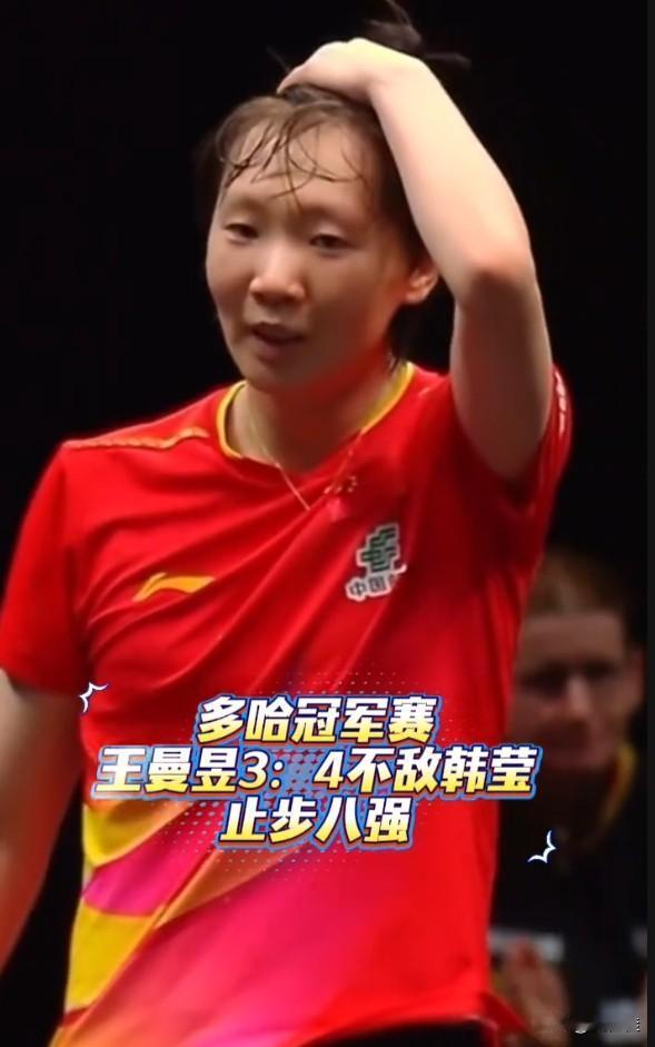 别人都在关心韩莹,我只关心曼昱! 多哈冠军赛上王曼昱3:4惜败韩莹止步八强,镜头里她抬手整理头发时满脸自责的样子,看得人心里揪得慌。这场比赛打得有多胶着,曼昱就有多拼,每一分都咬着牙去争,可最后还是没能跨过这道坎。 更让人心疼的是,她和队友还被韩莹“双杀”导致半区失守,换谁都会觉得愧疚吧?但曼昱从来不是轻易认输的人,她在赛场上的韧劲和拼劲,我们这些粉丝都看在眼里。 输一场比赛不算什么,重要的是能从中总结经验。相信曼昱会调整好状态,下次再站上赛场,依然是那个敢打敢拼的她!我们永远在身后为你加油,曼昱别怕,从头再来就好!