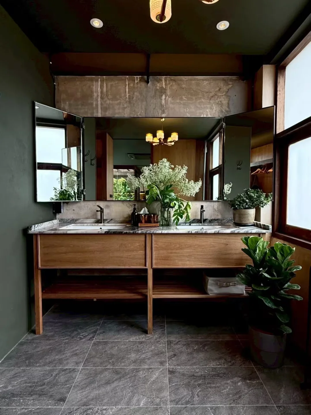 ⭐️非常喜欢这个浴缸🛁+绿色花房的设计,当你躺在床上,会感觉自己在一个水晶球里