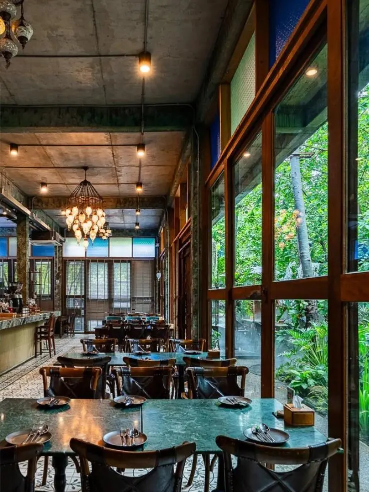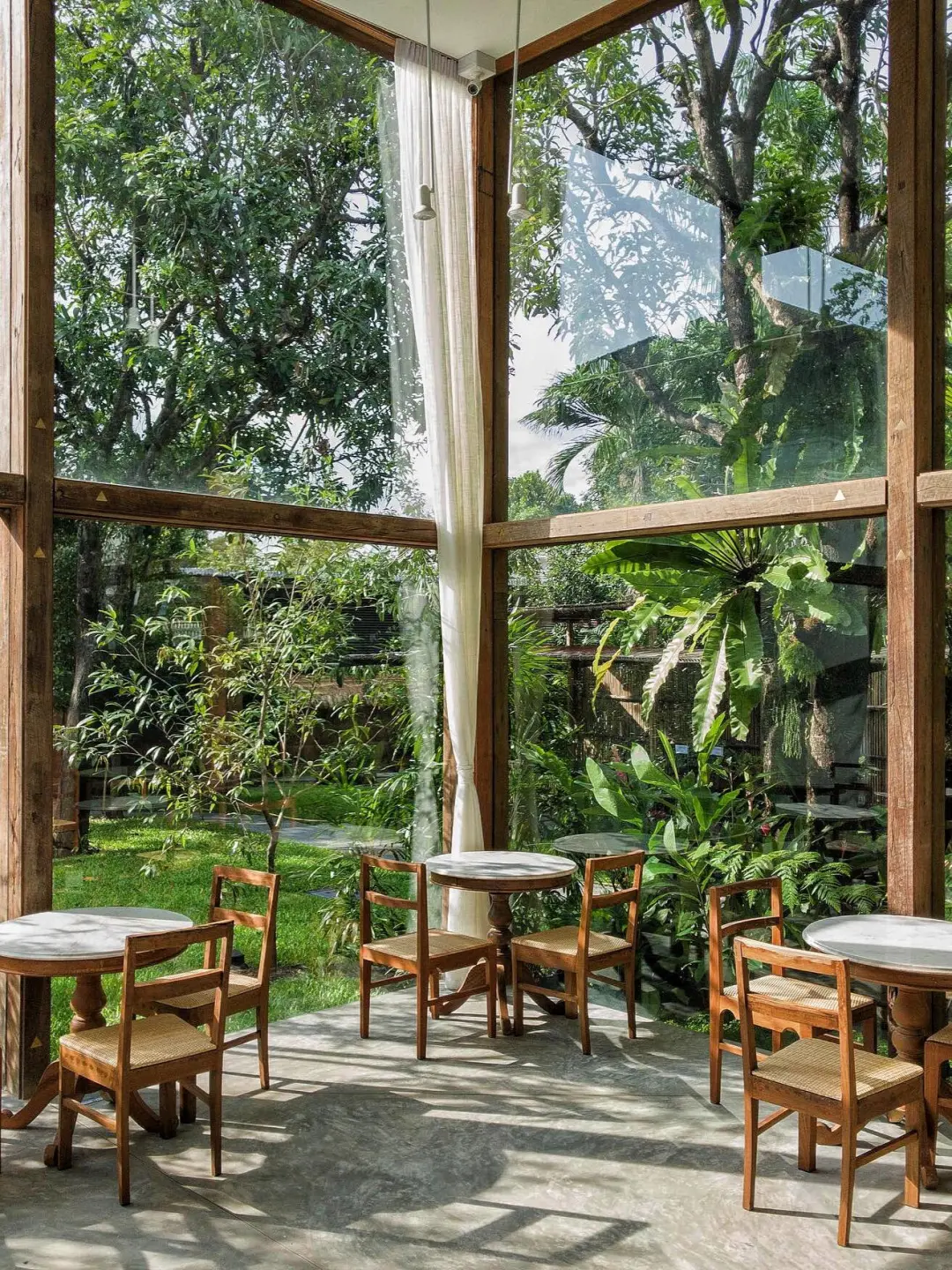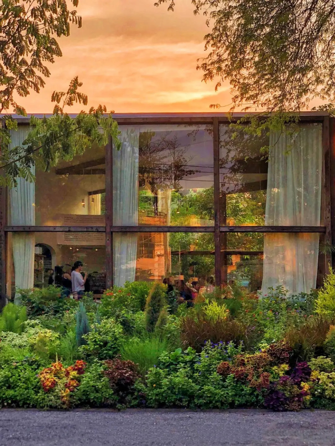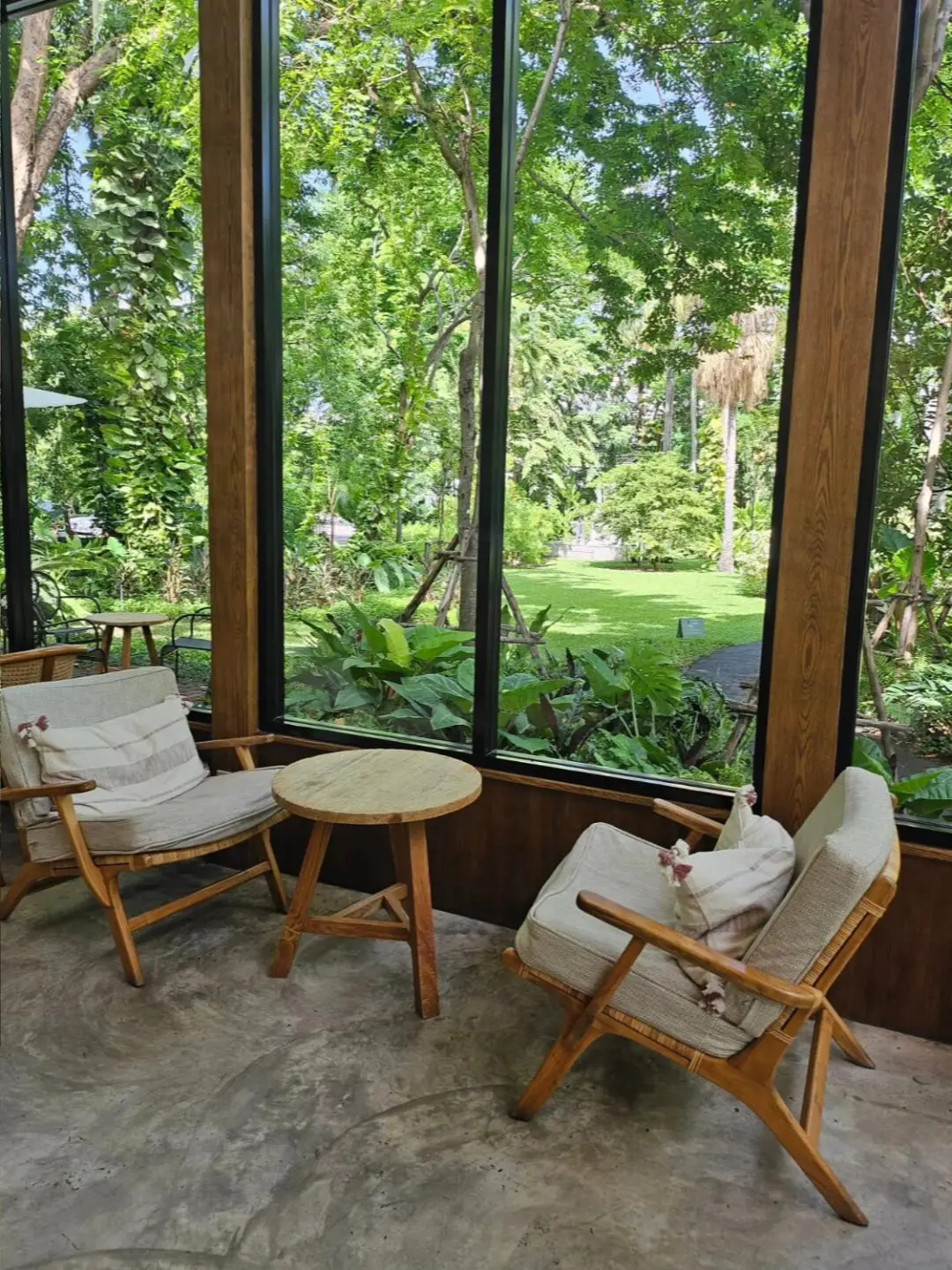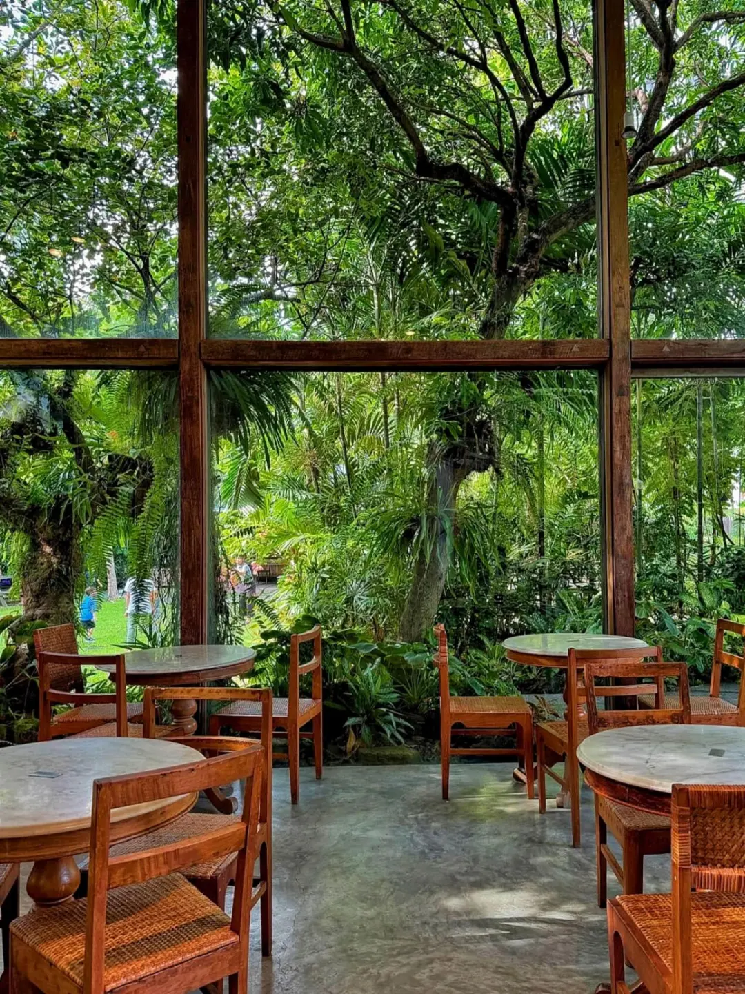 这家店就在素坤逸,隐藏在市区里的绿洲,透明的大玻璃房子被绿色植物🌳包围,满眼绿意,点一杯喝的在落地窗前坐一下午真的非常Chill!