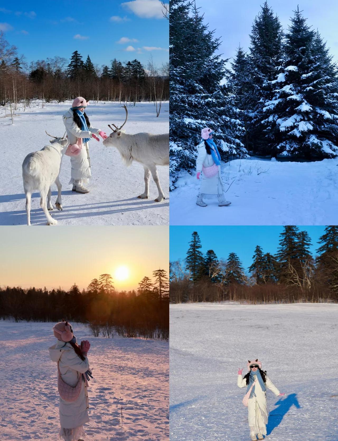 雪岭徒步路线毫无压力,晴天就是童话世界嘛 超治愈的雪地徒步路线,全程美到失语,拍照巨出片,新手友好无压力,赶紧码住! 早上包车从二道白河过来,开车一个小时, 12 点到达雪岭。 📍路线:景区入口右手边A线上山 → B线下山(全程2-3小时,慢悠悠逛完全ok~)路线图放评论区啦! ✨【上山篇】 从A线出发走个20分钟左右就到山腰打卡点啦~ 前面真的不用花很多时间停留,好看的都在后面,到了小木屋,就看到粉红小屋🎀、木头房子、可爱秋千,还有超梦幻的冰封玫瑰!随便站着拍都是氛围感大片,完全不用找角度! 累了旁边还有小吃摊,买份热乎的小吃暖手暖心,补充完能量继续冲!💪 往上走就是超治愈的驯鹿园啦!免费开放的哦~ 花30块买份苔藓就能和驯鹿贴贴拍照📸 毛茸茸的驯鹿好可爱,心都要化了!但是它们很势力眼👀,不给它喂转身就走了,你的苔藓千万不要被它们看到,会追着你要,哈哈哈~ 园内还有卖吃的,可以在里面取暖,不用担心饿肚子~ ✨【下山篇·美到窒息的风景】 喂完驯鹿就跟着雪地摩托的方向下山~ 翻过小坡瞬间被圣诞树林惊艳到!🌲 下午4点左右一定要在这里等日落!夕阳洒在雪地上,整个世界都金灿灿的,美到想哭! 沿着树林边缘走就是下山路线(和摩托车道平行),一定要注意安全,别靠车太近哦~ 走10分钟左右就到圣诞树广场啦!雪后的松树上挂满雪挂,像闯进了童话世界❄️ 关键是人超少!随便拍都不会有路人甲,浪漫到不行~ 再走20分钟左右就能回到山脚入口,沿途伴着晚霞下山,晚风都是温柔的,每一步都像在走电影里的场景🎬谁能想到最后一张在服务中心的卫生间拍的呢,工作人员还帮我打开窗台拍照😊 💡小Tips: 1. 穿防滑防水的鞋子!雪地有点滑,安全第一 2. 驯鹿苔藓30元一份,喂完拍照超出片,值得冲! 3. 一定要留到下午4点看圣诞树林的日落!错过真的会后悔! 4. 最好备一个滑雪手套,下午风大,手超级冷🥶。 5. 还有必备触屏笔,非常重要! 全程走下来一点都不累,风景还全程在线,喜欢拍照和治愈系风景的宝子一定要来!💕 雪地徒步长白山雪岭 雪岭攻略 雪岭 长白山旅游