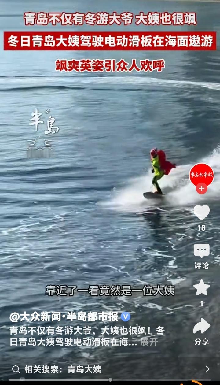 青岛冬日海面惊现“乘风破浪的姐姐”!电动滑板踏浪而行,飒爽大姨刷屏全网,网友直呼:这才是硬核人生! (来源:半岛都市报) 寒风凛冽的青岛海边,海浪翻涌,游客裹紧羽绒服匆匆而行。突然,一道身影划破灰蓝色的海面,脚踏电动滑板,如离弦之箭般破浪穿梭。水花飞溅间,身姿稳健,动作流畅,引得岸边人群阵阵惊呼。起初,人们以为这又是哪位极限运动爱好者,直到那道身影一个潇洒的回旋,逐渐靠近岸边。 当滑板稳稳停靠,这位“弄潮儿”摘下护目镜,露出面容时,围观人群瞬间沸腾了。竟是一位头发已见花白的大姨!她面色红润,眼神明亮,对着岸上的镜头和欢呼声,露出了爽朗又略带腼腆的笑容。那一刻,冰冷的海风仿佛都被她的热情点燃。 “我的天,我以为是哪个小伙子!”“靠近一看竟然是大姨,太帅了!”岸边手机拍摄的视频迅速在网络上炸开。网友们不吝赞美,“飒”、“硬核”、“偶像”成了评论区的高频词。这已不是青岛海边第一次因中老年人“出圈”,从冬泳大爷到滑板大姨,他们一次次刷新着人们对年龄、对生活的想象。 这位大姨的爆火,绝非偶然。在她身上,我们看不到丝毫“这个年纪该有的样子”的束缚。她驾驭的不仅是电动滑板,更是一种不被定义的人生姿态。当很多同龄人开始谈论养生、带孙,她却选择在冬日大海里,追寻风与速度的激情。这何尝不是一种深刻的“叛逆”,一种对生命活力的极致张扬? 我们常常在焦虑,在设限,在感叹“老了,不行了”。可这位青岛大姨,用行动给了我们一记响亮的回答:生命的精彩,从来与年龄无关。它关乎勇气,关乎热爱,关乎你是否还愿意为自己心中的“浪花”而激动。她的身影,像一把钥匙,瞬间打开了无数人心中那扇关于“可能”的锁。 看看我们身边,或许你的母亲正在广场舞中焕发光彩,你的父亲在垂钓中寻得宁静。这位滑板大姨,不过是万千中国中老年人追寻自我、活出精彩的一个缩影。社会在进步,老年人的生活早已不止于柴米油盐,他们正用各种方式,重新掌握生活的主动权,绽放“第二人生”的无限可能。 她的故事之所以动人,正是因为它击中了我们内心最普遍的渴望——对自由、对活力、对打破常规的向往。我们为她欢呼,也是在为自己内心那个渴望挣脱、渴望体验的灵魂呐喊。在按部就班的生活里,我们都需要这样一剂“强心针”。 下一次,当你再想用“年纪大了”作为借口时,不妨想想这位青岛海面上的飒爽大姨。年龄从来不是生活的边框,而是经验的底色。真正的衰老,是从放弃对世界的好奇与探索开始的。只要心中热血未凉,人生何处不能“乘风破浪”? 这个冬日,青岛的海因为一位大姨而格外滚烫。她踏浪而行的身影,已然成为一道比阳光更耀眼的风景。这不仅仅是一次酷炫的运动展示,更是一封写给所有人的倡议书:去热爱,去尝试,去活出你自己最飒的模样。 青岛大姨 乘风破浪