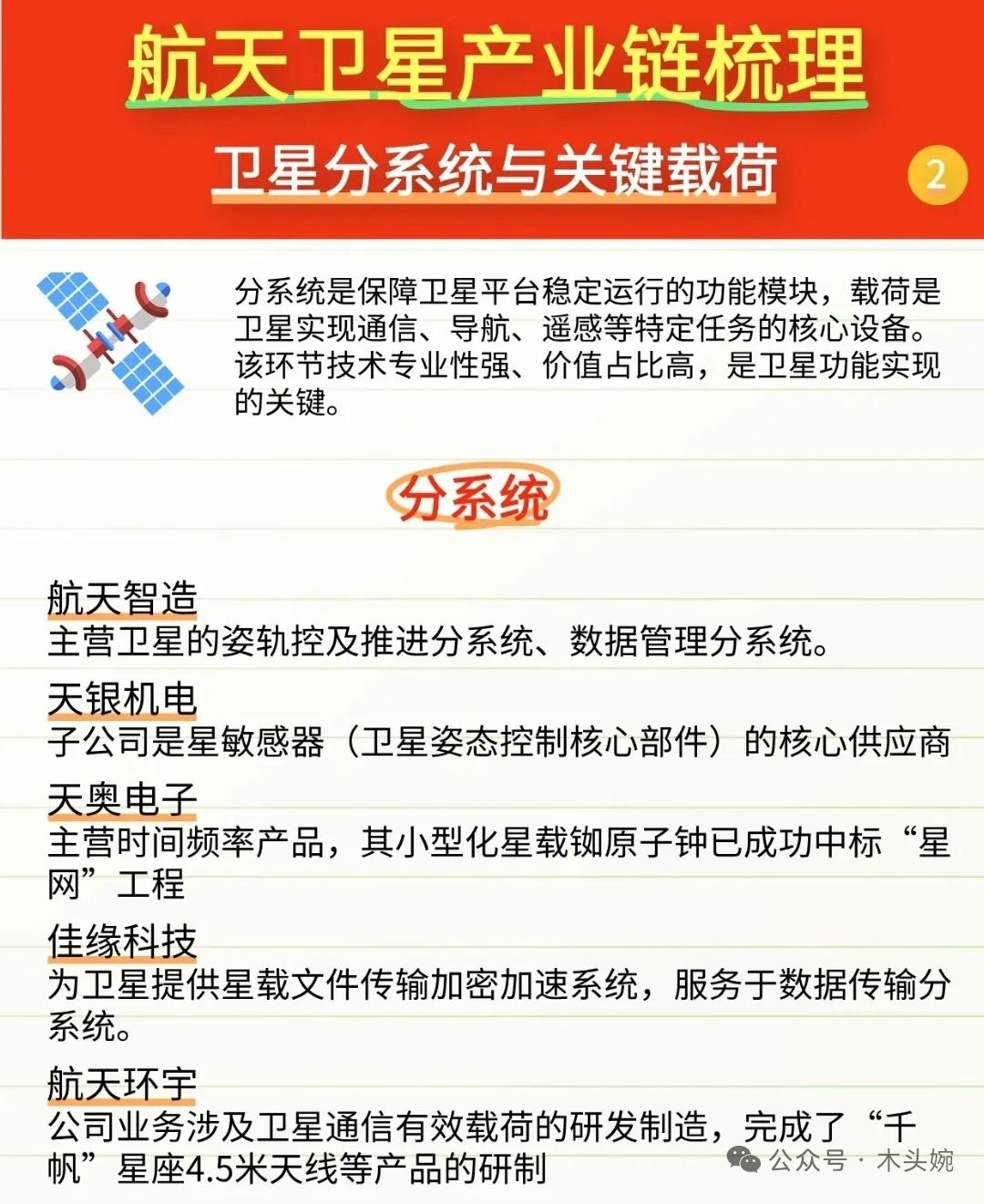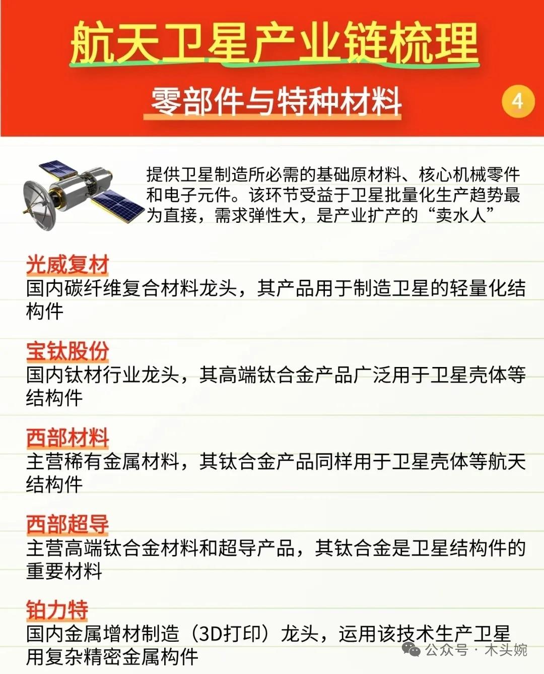 20.3万颗卫星+发射场扩建+IPO开闸!商业航天迎最强风口,相关概念细分龙头代表有哪些? 1月10日重磅利好,中国向ITU提交20.3万颗卫星星座申请,抢占频轨资源,驱动卫星制造与发射需求。2026年预计发射超100次,朱雀三号、双曲线三号等多型可复用火箭将密集试飞,降本增效加速。 政策加码、卫星星座扩容、IPO提速、发射产能释放四大方向,驱动板块走强。航天卫星产业链梳理堪称“藏宝图”!从卫星分系统与关键载荷的顶层设计制造,到零部件与特种材料的基础供应,再到检测与测试服务的品质把控,全链条核心环节与对应龙头标的一一拆解。中国卫星、光威复材、西测测试等企业各守赛道,覆盖卫星制造、材料供应、检测服务等关键领域。 理财有风险入市需谨慎,资料取材网络仅供参考不能作为投资依据。中国商业航天 航天航空行业