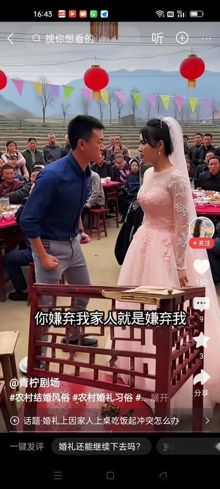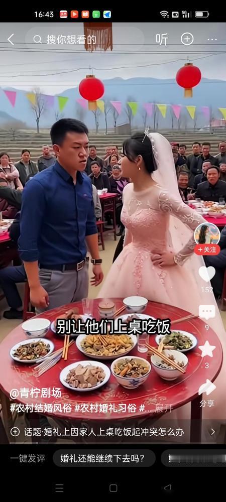 婚礼宴席上,新娘突然对新郎说,你们家亲戚太多太土,别让他们上桌吃饭,不然我就不上台拜堂。 说真的,这要求提得实在太伤人了,在这个节骨眼上非要把亲戚分个三六九等,完全没顾及新郎的体面。 新娘可能觉得这是在维护她心里的“高端”氛围,但她大概忘了,婚姻的根基在于彼此尊重,也包括尊重对方的出身。 新郎当时脸都青了,直接回怼说嫌弃亲戚就是嫌弃他本人,这婚干脆别结了。 我看这就是压死骆驼的最后一根稻草,他直接当众把桌子一掀,大踏步就往外走。 我倒挺佩服新郎这种决断力的,三观如果不合,真的没必要硬凑,现在发现总比结婚后再闹得鸡飞狗跳要强。 新娘这时候才意识到闯祸了,在后面拼命追,可惜新郎从头到尾都没看她一眼。 很多人可能会觉得男方太冲动,但在这种原则问题上,我觉得这是最清醒的止损。 毕竟一个人如果连你的家人都打心底里瞧不起,那她喜欢的可能只是一个被精修过的你,而不是完整的你。