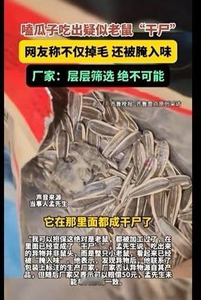 嗑瓜子嗑出老鼠干尸?毛发俱全腌入味!江西“乡吧佬”厂家竟称层层筛选绝不可能,全网怒斥:良心也被炒焦了? 深夜游戏间隙,伸手摸进瓜子袋,却抓出一团软绵绵、带毛的异物——这不是恐怖片情节,而是江西消费者孟先生真实遭遇。一袋“乡吧佬香瓜子”里,赫然躺着一只老鼠干尸,身形完整,毛发黏连,仿佛已被香料腌透。视频画面冲击力十足,让人瞬间反胃。 消费者描述,老鼠干尸并非碎块,而是整体出现,甚至掉落毛发。这种视觉与触感的双重刺激,彻底击穿零食带来的愉悦感。更令人心惊的是,孟先生最初误以为这是知名品牌,细看才发觉是包装相似的“乡吧佬”。山寨包装混淆视线,安全隐患暗藏其中。 厂家回应堪称“经典模板”:先是否认生产环节有问题,强调“层层筛选”;随后松口愿赔50元,试图将大事化小。这种敷衍态度,瞬间点燃公众怒火。难道消费者的健康恐慌,只值半张百元钞?食品安全的底线,竟被估出如此廉价? 纵观网络舆论,网民几乎一边倒地质疑厂家说辞。“层层筛选还能筛进整只老鼠,这筛网是漏斗做的吧?”“莫非是赠送的‘荤腥’彩蛋?”辛辣讽刺背后,是无数人对食品流水线的信任崩塌。当生产线可能沦为老鼠的“焚尸炉”,谁还能安心嗑下一粒瓜子? 从鼠头鸭脖到瓜子干尸,类似事件屡屡刺痛公众神经。消费者维权时,常面临厂家扯皮、取证困难、赔偿微薄的困境。即便依据《食品安全法》可索要千元赔偿,但过程耗神费力,很多人最终选择沉默。这种无奈,变相助长了不良厂家的侥幸心理。 更深一层看,事件折射出山寨食品市场的乱象。模仿知名品牌包装,利用消费者视觉惯性,却无视品质管控。当投机取巧成为潜规则,生产线上的筛选机制便形同虚设。老鼠干尸或许只是极端案例,但背后暴露的管理漏洞,或许早已渗入无数零食袋中。 食品安全不能总靠消费者“以身试毒”来曝光。监管必须跑在问题前面,对涉事厂家全面彻查,同批次产品下架检测。同时,应建立黑名单制度,对屡教不改者施以重罚。只有让违法成本高到肉痛,才能逼出企业的敬畏之心。 目前,市场监管部门已介入调查。我们期待真相水落石出,更期待借此契机,整顿休闲食品行业乱象。毕竟,嗑瓜子本是寻常享受,谁也不愿在酥脆声中,咬碎对“中国制造”的信任。你的每一次关注和转发,都在推动改变发生。 (来源:综合齐鲁晚报、红星新闻、网友爆料) 食品安全 消费者维权