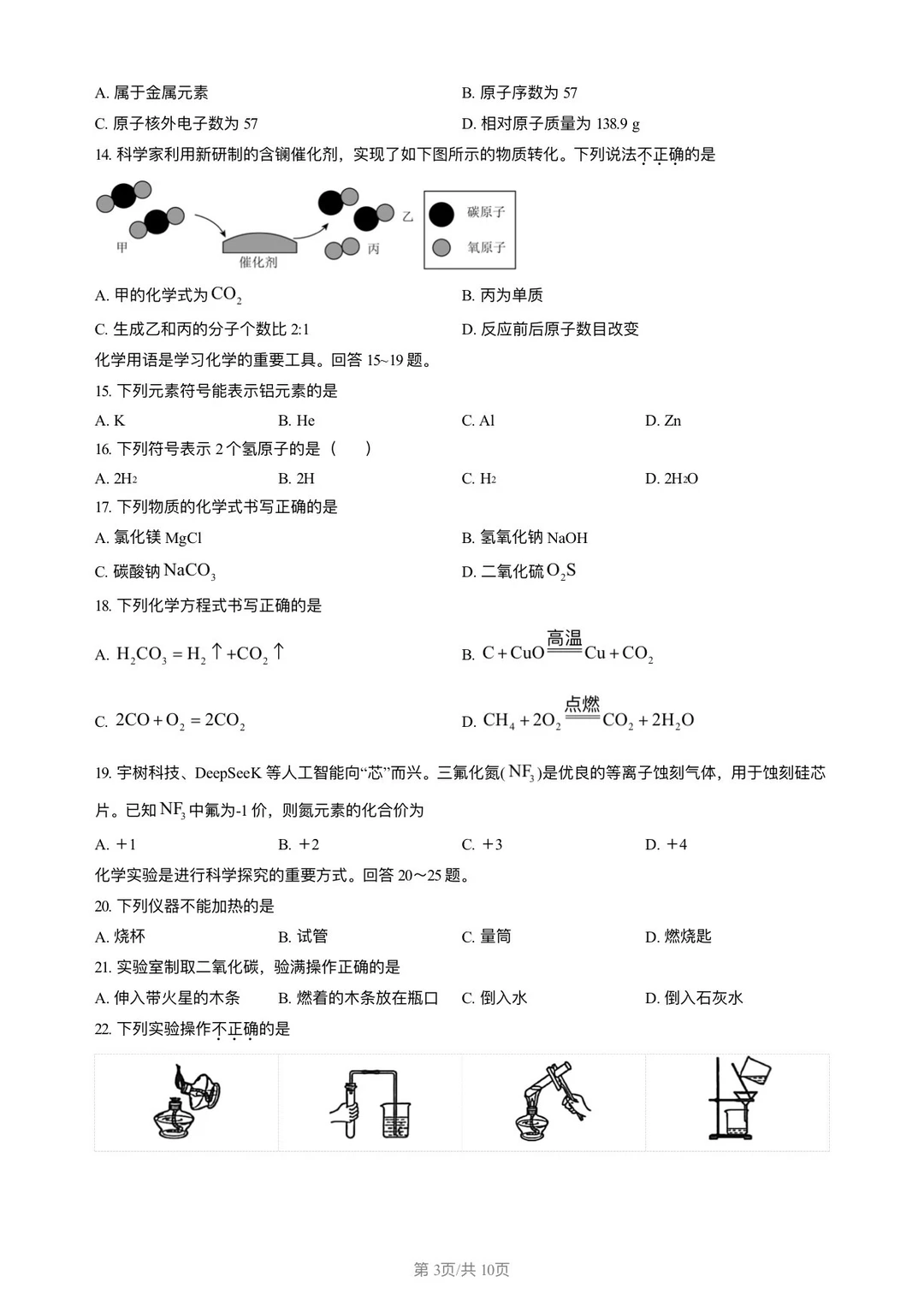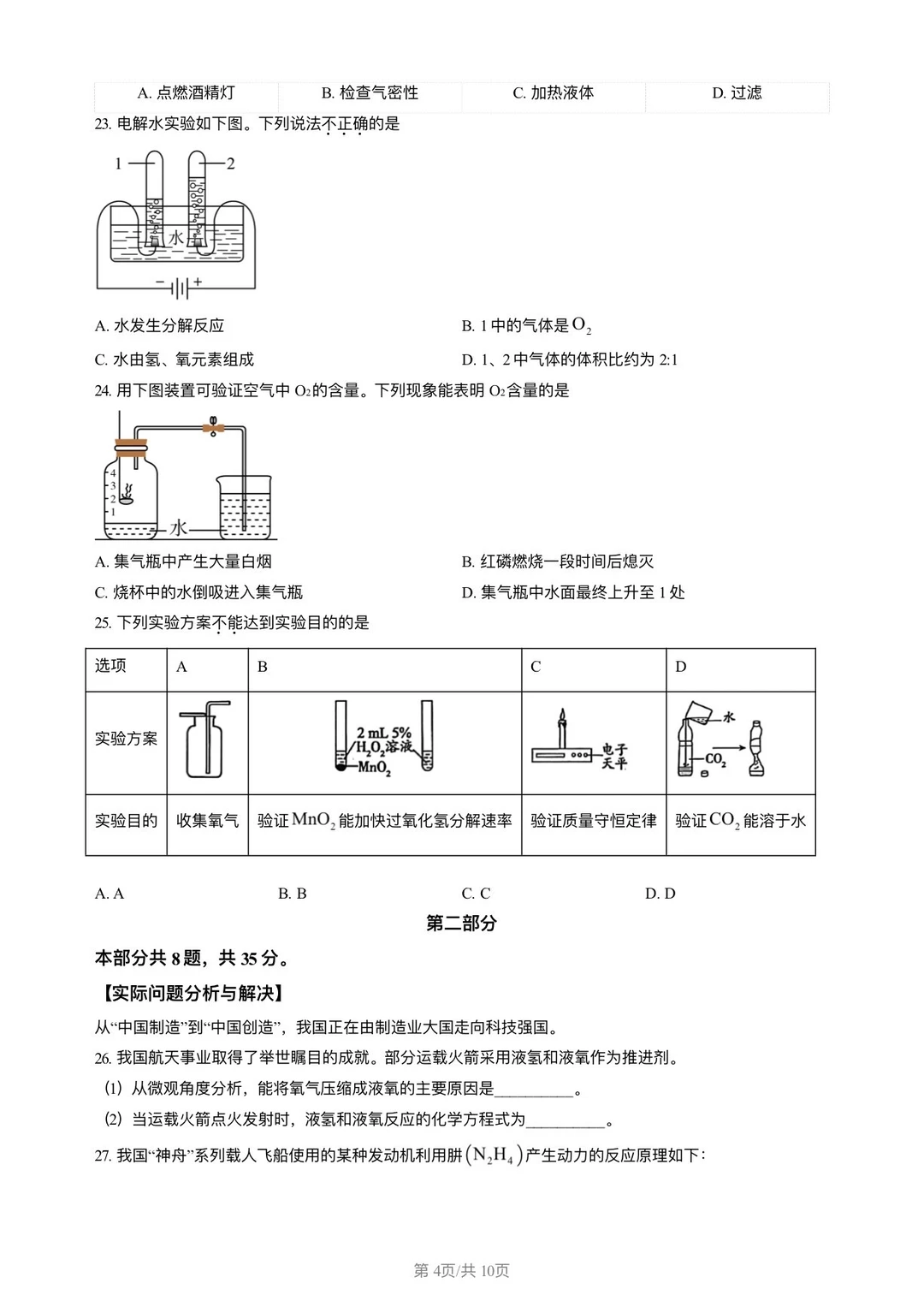 2026朝阳区初三化学上期末试卷