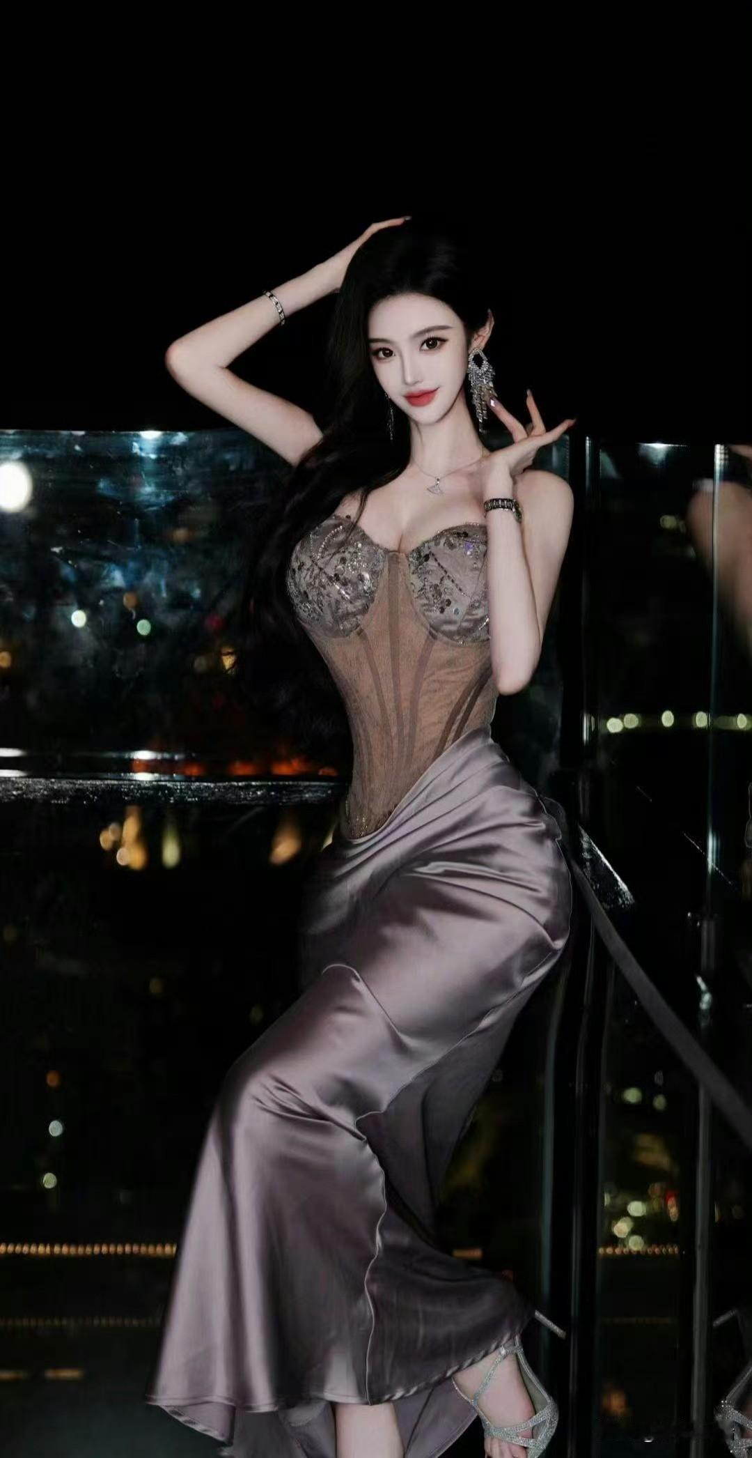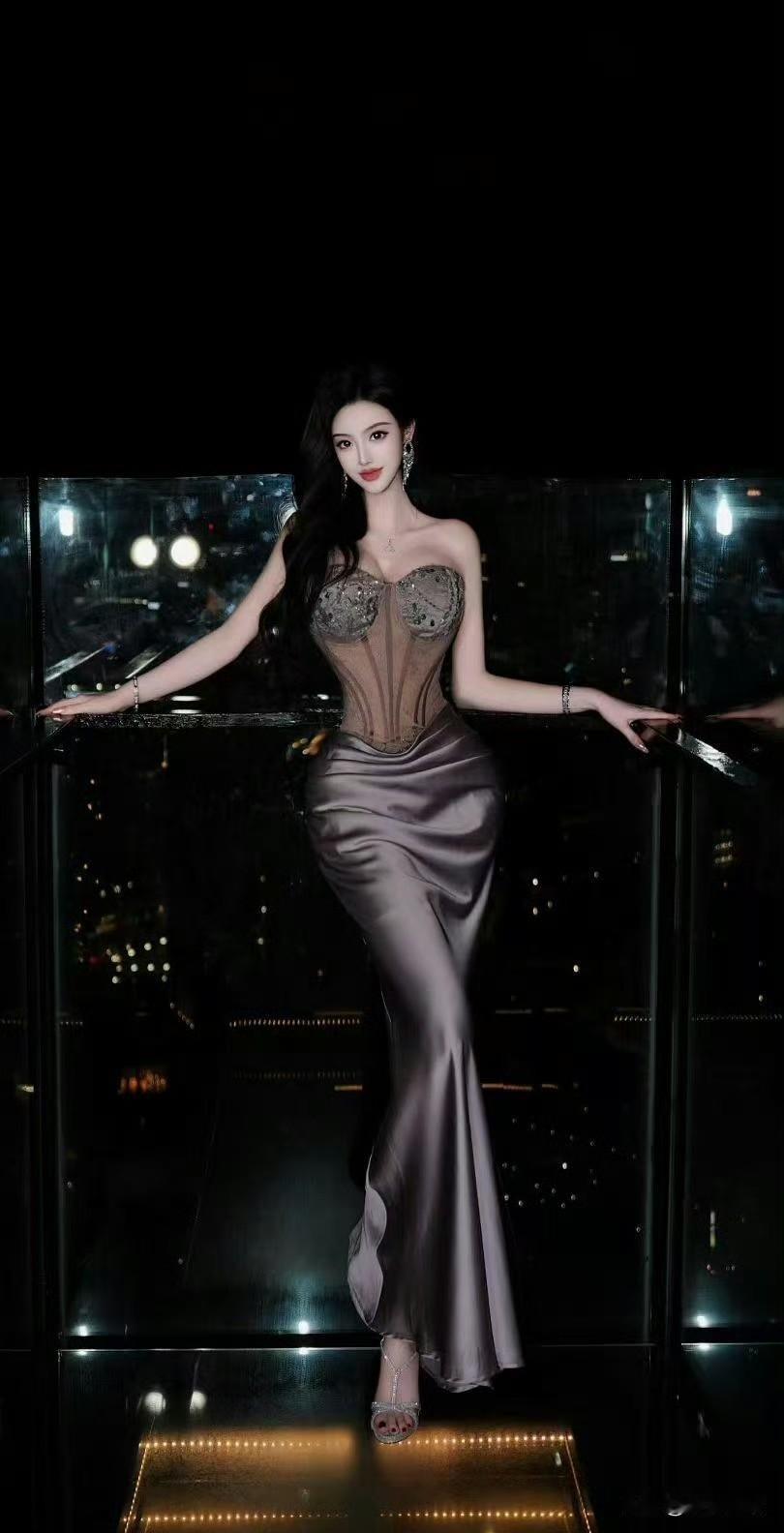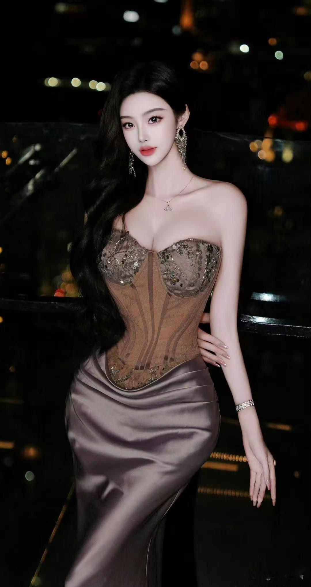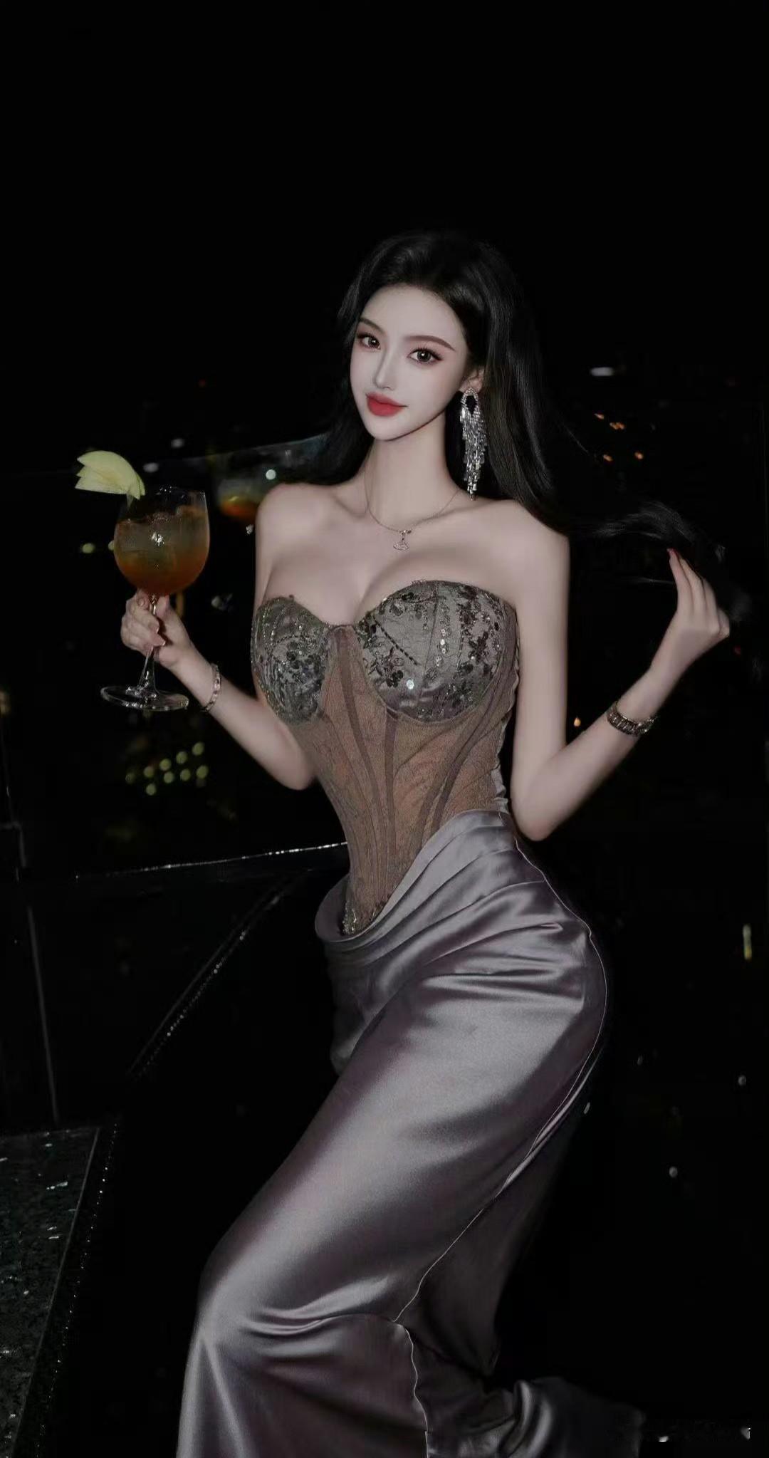 夜色中的优雅,香槟与晚礼服的完美结合。