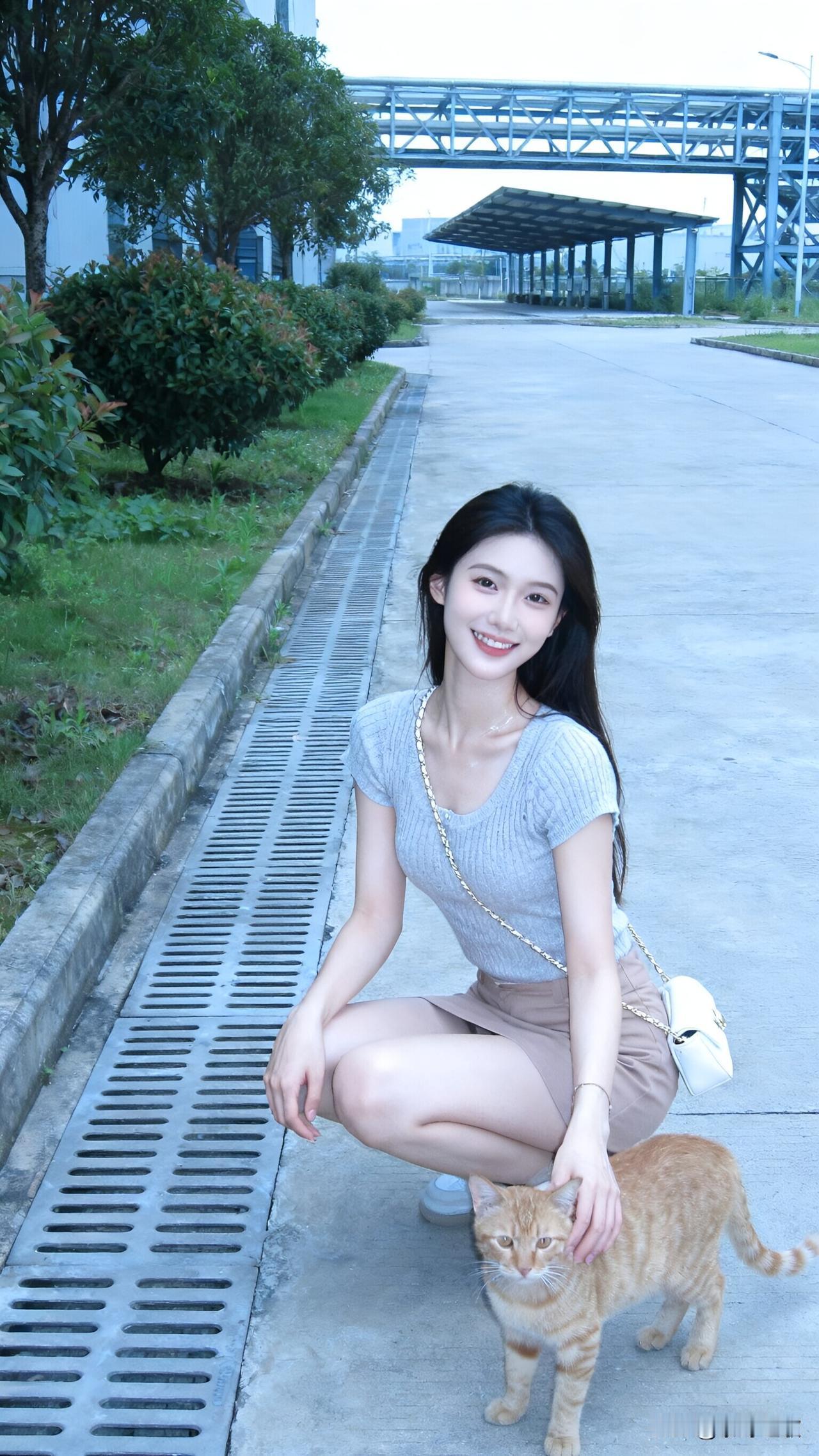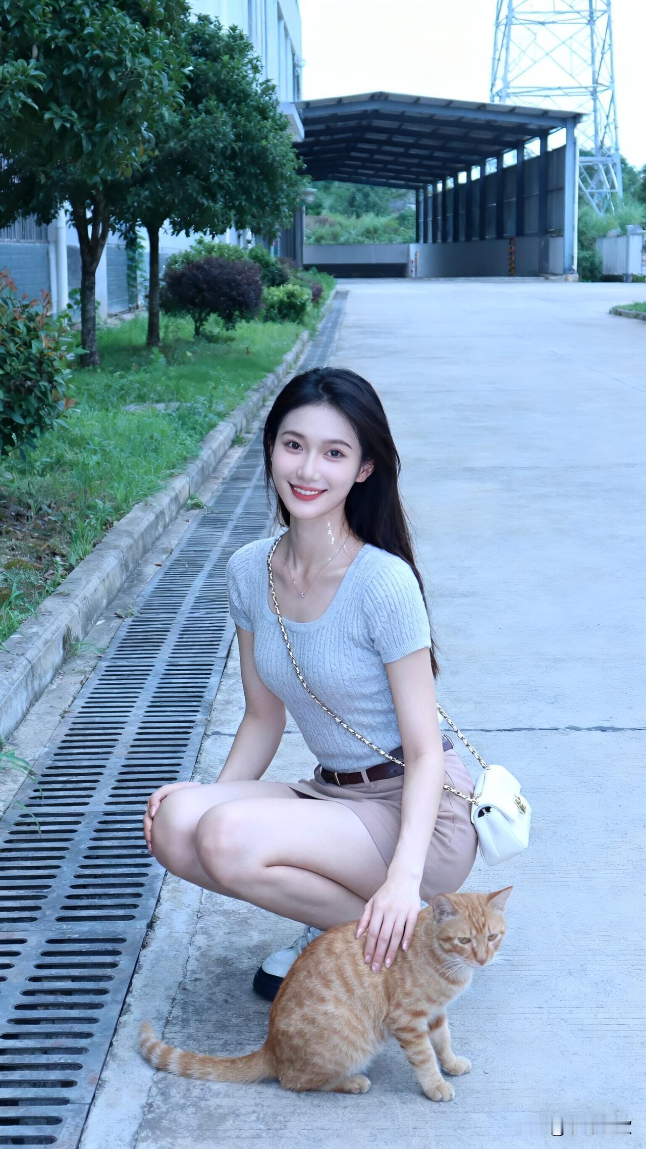 甜妹与橘猫同框太治愈!这组抓拍直接萌化人心 谁能拒绝甜妹和橘猫的神仙同框画面啊!在户外的水泥路上,一位颜值超高的甜妹蹲在路边温柔撸橘猫,瞬间戳中了所有人的萌点。她穿着灰色针织短袖搭配卡其色短裙,简约的穿搭衬得冷白皮愈发透亮,乌黑的长直发随意垂落,笑起来眉眼弯弯的模样甜度爆表,精致的五官宛如邻家女孩般亲切。 身旁的橘猫乖巧地被她抚摸着,慵懒的模样和甜妹的温柔形成了绝美的互动感,背景里的绿植和工业风建筑作为点缀,让画面多了几分日常的烟火气。这组随手抓拍的照片,既有甜妹的灵动可爱,又有橘猫的软萌治愈,每一个瞬间都充满了温馨的氛围感。这样的治愈系画面,是不是瞬间让你心情都变好了? 甜妹与橘猫 治愈系瞬间 日常随拍 高颜值美女