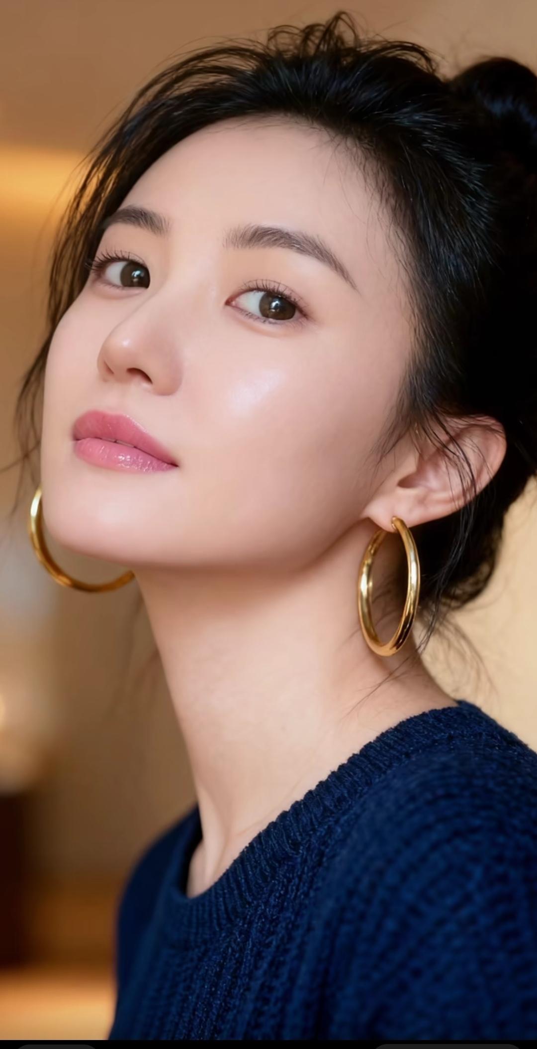 金环映笑靥,玉颜映秋光。