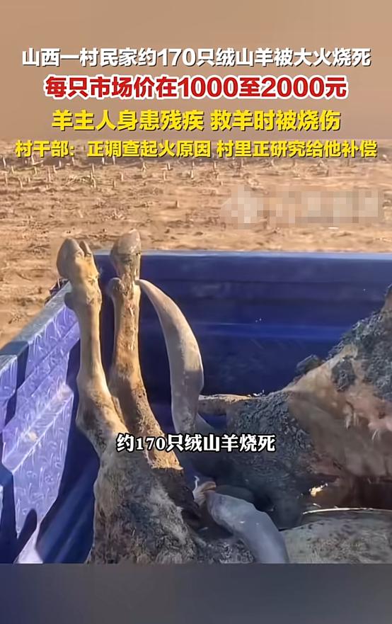 “悲剧还是发生了!”1月9日,山西大同,一残疾男子放羊时,地里突然着火了,当时风很大,所以大火很快将羊群包围,男子见状心急如焚,不顾危险冲进去想要救羊,结果自己也被烧伤,只能眼睁睁看着羊群都被烧死。网友:想想都心疼! 这哪里是一场简单的野火,分明是把一个残疾庄稼汉的脊梁骨架在火上烤。对于搞养殖的农户来说,大风天往往是最让人心慌的时候,风成了那把最无情的“助推手”,硬生生把一场意外推向了毁灭的深渊。 起初可能只是那片玉米秸秆地里的一点莫名火头,但在狂风的裹挟下,火舌瞬间变得肆无忌惮,像是张开了血盆大口。而在那片枯黄易燃的秸秆地里,有着大概170只正低头觅食的羊。 那是绒山羊,懂行的都知道这品种的金贵。按照当下的行情,每只羊的身价少说也在一两千块钱上下。这已经不仅仅是一群牲畜了,对于肢体本就有残疾的村民杨先生来说,这些羊就是他在地里长出来的“全副身家”,是一家老小吃饭的指望,更是他作为残疾人要在村里立足的全部底气。可就是那一阵紧似一阵的大风,把这几十万元的活资产瞬间困在了烈焰中间。 这惨烈的一幕发生时,谁都不敢想象当事人那种钻心的绝望。作为一个一只手有残疾的人,杨先生当时不仅没逃,反而发了疯似的冲向火场。这完全是下意识的本能如果不去救,这个家就垮了。但在那铺天盖地的火势面前,人的力量,尤其是身患残疾之人的力量显得太过渺小。 那些没能逃出来的绒山羊,在汹涌的火光和浓烟中很快就没了声息,百余条生命连带着杨先生多年的心血,顷刻间化为乌有。而这场以命相搏的救援,最终换来的是杨先生自己被火烧伤,紧急送往了医院。 虽然广灵县应急管理局和消防力量早已介入,那场吞噬一切的大火也终被扑灭,但留给这个家庭的灰烬实在太沉重了。1月10日,村里的消息才慢慢传开,人们在唏嘘之余,关注点不得不落在这个残疾家庭未来的生计上。 最让人心里咯噔一下的细节是,这些羊,竟然没有上一份保险。这意味着所有的损失都得杨先生自己硬扛,没有任何商业兜底机制来缓冲这场灾难。用雪上加霜这个词,可能都无法形容这种从平稳生活直接坠入负债困境的绝望。 火究竟是怎么起来的?是路过的烟头,还是其他的意外?直到加斗镇政府工作人员和当地派出所民警介入调查后,那个“不明火源”的具体来头暂时还是个谜。无论是广灵县的各个部门还是西加斗村的党支部书记邓立成,此刻能给出的确切回复大多还在“调查中”。 虽然村里表示正在研究怎么给杨先生一些补偿,帮他渡过这个坎,但面对近两百只优质绒山羊的灭顶之灾,村集体的这一点帮扶,比起那笔天文数字般的损失,究竟能填补多少窟窿,谁心里也没底。 如今杨先生还躺在病床上养伤,那一身烧伤不仅疼在皮肉,更疼在心头。外面的地里只剩下一片焦黑,那个曾经虽然手部残疾却能靠勤劳撑起百只羊群的汉子,现在只能面对这场彻底的“归零”。 所有的调查结果、后续的援助方案,都在这寒冬的1月里显得格外急迫。毕竟,这一把火烧掉的不止是羊,还有一个农村家庭原本也没那么坚固的生活防线。