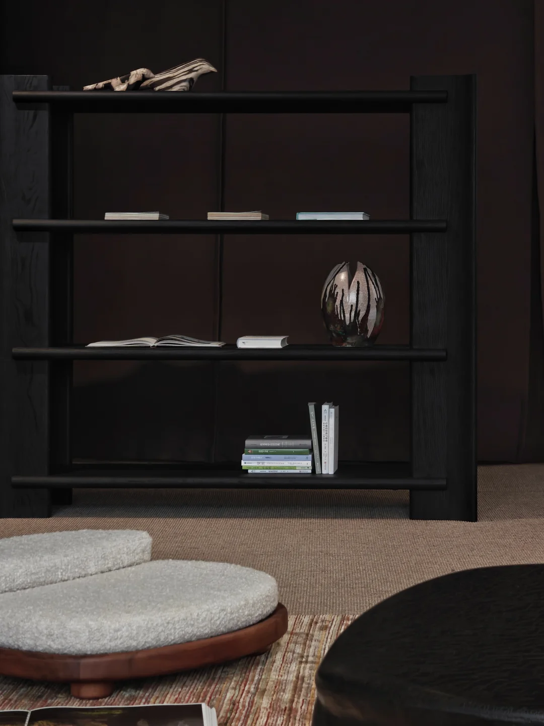 🍁说回展览本身,入场的黑色冥想空间设置很棒,一下子就和现实世界隔离开,昏暗的光线把沉浸感拉满,紧扣展览主题。