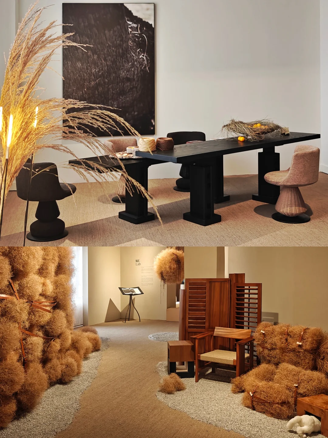 🍁揭开帘子后是温暖舒适的起居室空间,再经过一条风滚草包围的“小径”,蕞后是摇曳的“发光”芦苇丛,艺术家们各种形式的作品和RF.Lab的家具有机融合,构建出秋意甚浓的室内场景。