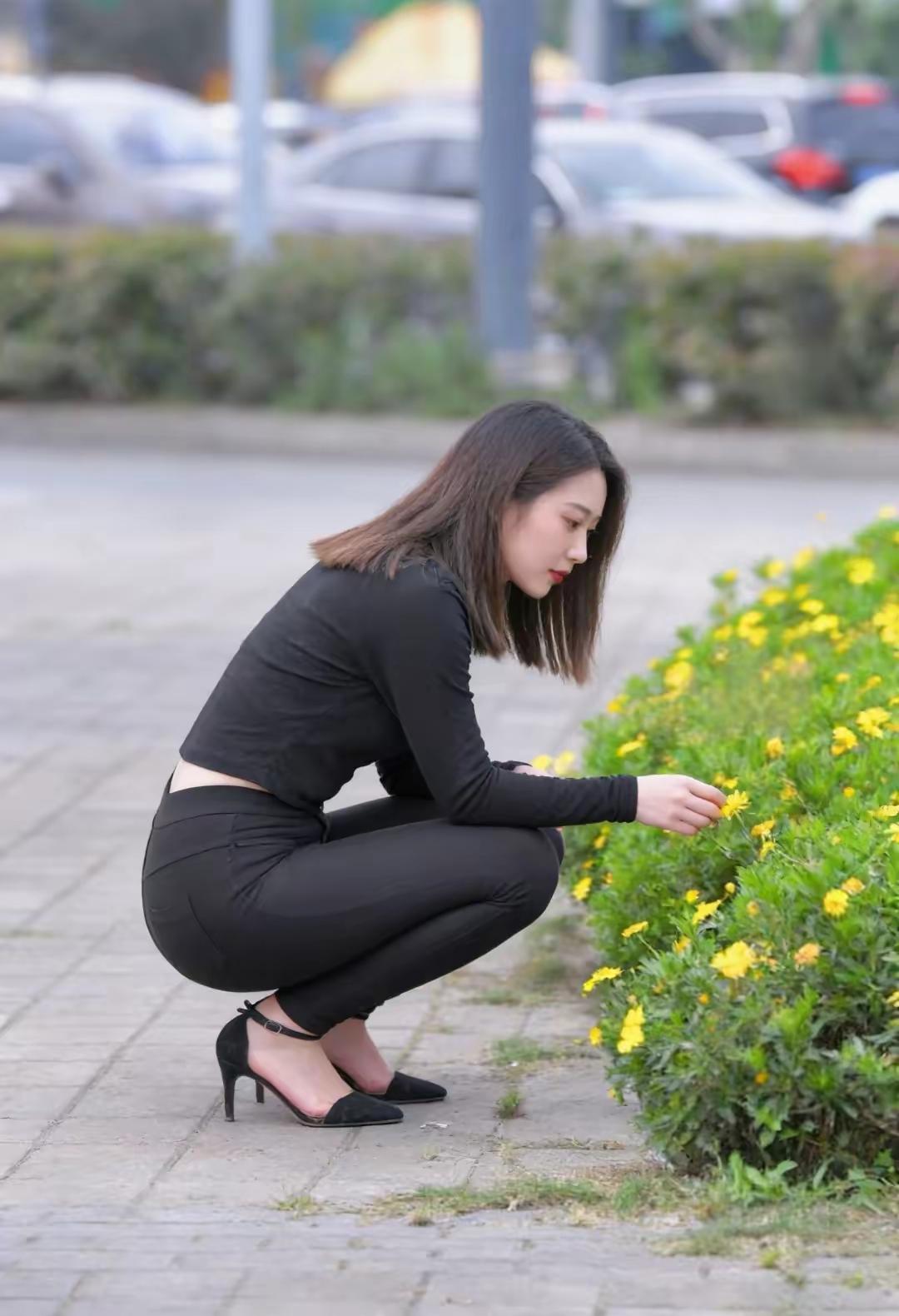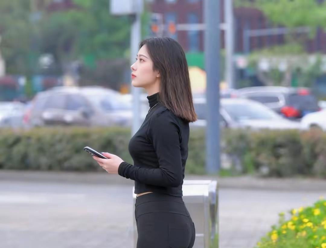 秋日穿搭,很色系黑色高领衫配黑色牛仔紧身裤,性感时尚,中短发的发型显得概念又不失温柔黑毛衣穿搭