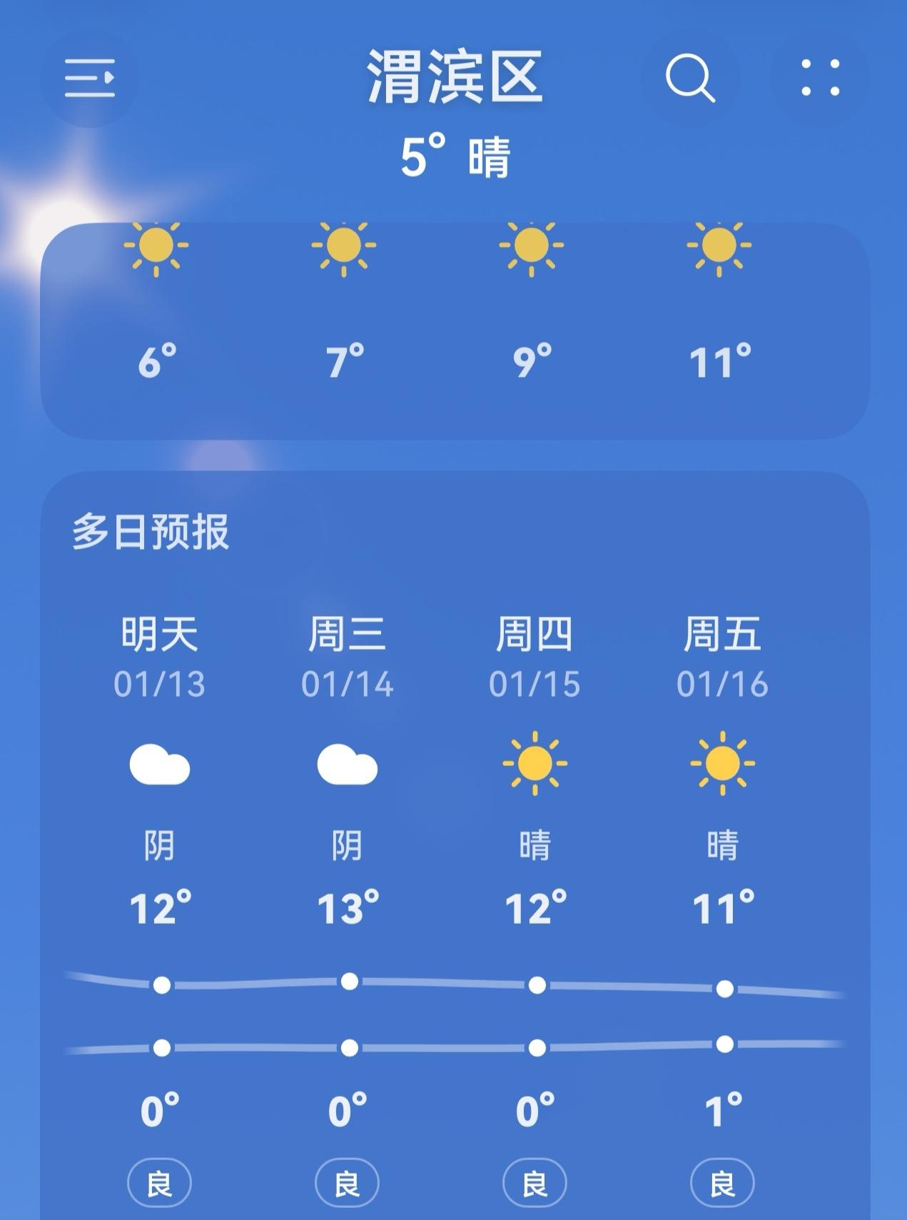 看看今天宝鸡市区的气温,一下子飙升到16°度,这哪是冬天该有的气温。刚入冬时,气象台预报说今年冬天是个“暖冬”。 看这一周(1月11日至16日),除今天外,其他几天最低气温都在0°到1°之间,最高气温也在10°以上,今天甚至达到了16°。这样的气温,让人有点春天来临的感觉。实际现在正处于“三九”,按说是冬天最冷的时节。 今年元旦前后的一场雪到现在消融的也差不多了,气温回升也在常理之中,但回升这么快还是让人有点吃惊,气温突降突升对人身体健康会带来影响,对农作物成长同样会带来危害。 “三九四九冰上走。”对于今年冬天宝鸡的气候来说,“冰上走”可要千万小心, 10°以上的气温,足可以让“厚冰”变“薄冰”,让“薄冰”消失殆尽。看来,今年冬天还真是个“暖冬”。