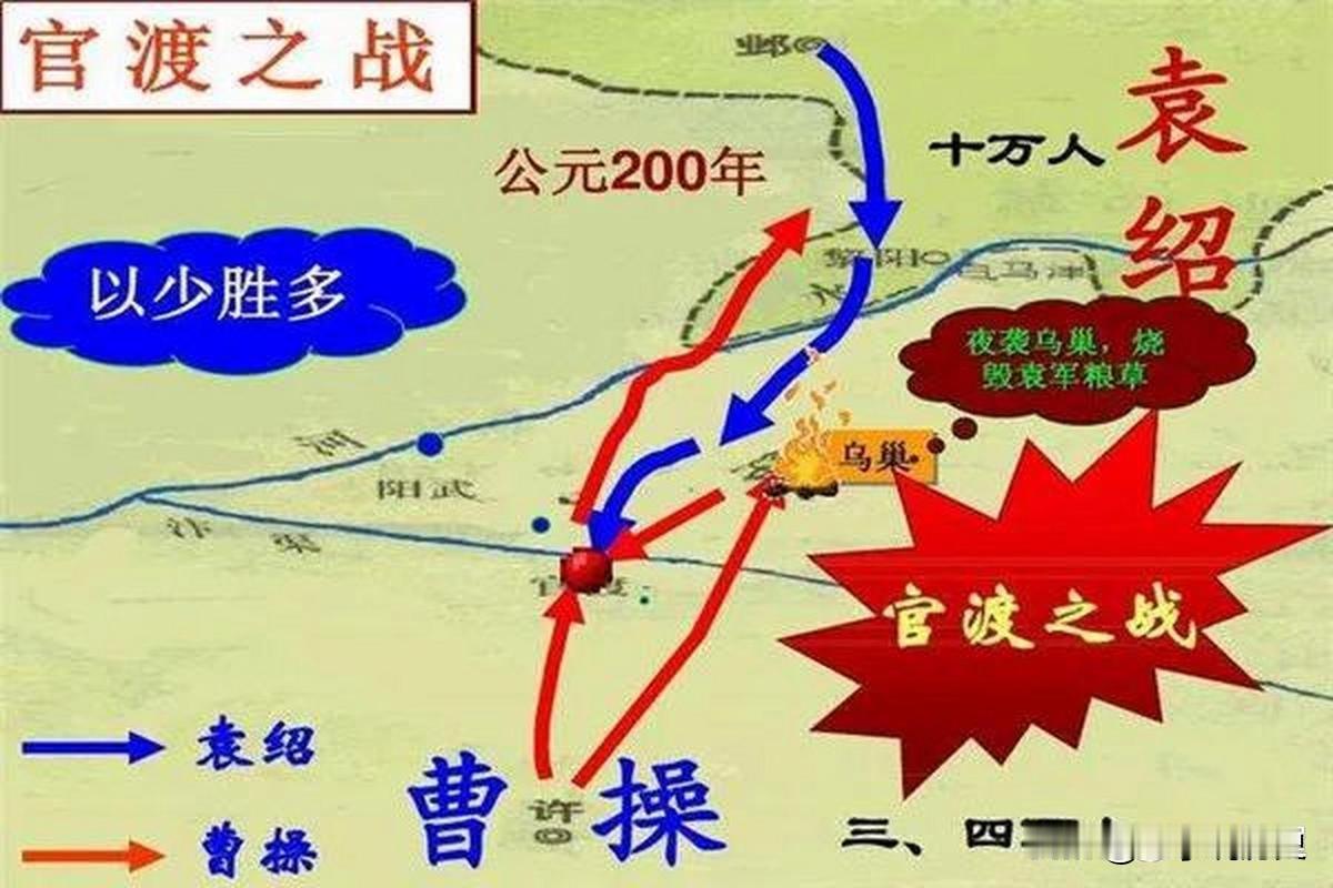 🔥官渡之战:曹操2万兵马如何把袁绍10万大军打得哭爹喊娘? 东汉末年,袁绍和曹操这对老对手,终于在官渡(今河南中牟)摆开架势干了一架!袁绍坐拥冀、青、幽、并四州,带甲十万,还打着“奉诏讨贼”的旗号,气势汹汹;曹操呢,挟天子以令诸侯不假,可兵力才两万,还四面受敌,这仗怎么看都是袁绍稳赢。结果呢?官渡一战,曹操愣是把袁绍打得丢盔弃甲,成了中国历史上最经典的“以少胜多”教科书! 关键转折在乌巢!袁绍谋士许攸因家人被审配抓捕,一气之下投了曹操,直接把袁军粮草囤积地给卖了。曹操二话不说,亲率五千精兵夜袭乌巢,一把火烧光粮草,袁军瞬间乱了套。更绝的是,袁绍拒绝张郃“救乌巢”的良策,反而让他强攻曹营,结果张郃临阵倒戈,袁军彻底崩盘! 曹操赢就赢在敢赌、会用人才、后勤保障到位;袁绍则刚愎自用、内部党争不断,活生生把一手好牌打烂。官渡一战,曹操统一北方,三国格局就此定型!你觉得这仗袁绍输得冤不冤?