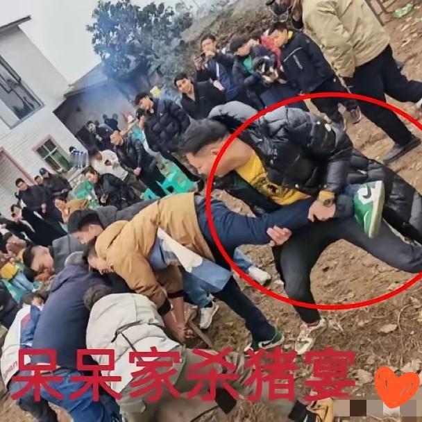 笑不活了! 一位开敞篷保时捷的大哥去合川呆呆妹家里按猪。没想到来的人太多了,结果他只能去按一位网友的脚,笑死啦。 保时捷的大哥跑去农村按猪,结果被嫌“干活不行”,转头烧火刷碗忙不停——合川呆呆妹的杀猪宴,早不止是热闹那么简单! 大家挤破头往村里跑,真不是为了一口刨猪汤。开豪车的愿意放下身段干粗活,普通人自带餐具来赴约,本质是在追一份久违的“无差别快乐”。 没有身份标签,没有利益算计,大家一起按猪、生火、唠嗑,这种纯粹的互助与热闹,正是快节奏生活里最稀缺的东西。 这场狂欢的核心,是呆呆最初那份朴素的孝心与坦率——想帮父亲分担,想让家里热闹点。这份不加修饰的真诚,戳中了太多人内心的柔软。 比起精心设计的网红打卡,这种自发的、接地气的联结,才更能治愈孤独。 可惜后来有些网红只顾蹭流量,留下满地垃圾还打扰村民,多少败了兴致。但幸好,大多数人的善意没被辜负。 你心里最怀念的“人间烟火”是什么样子?是老家的宴席,还是邻里间的搭把手?来评论区说说~