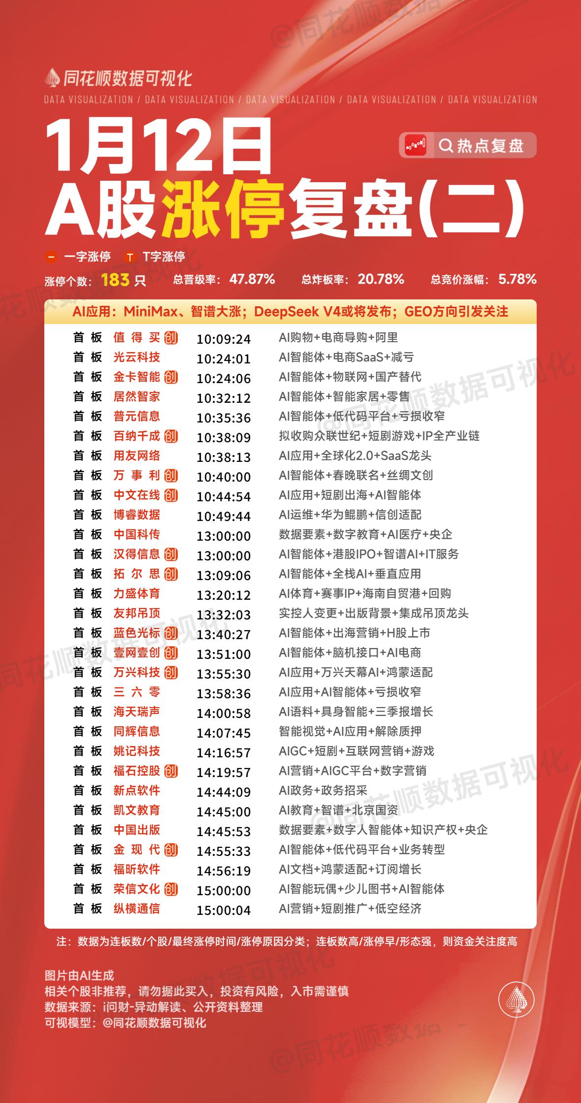 1月12日复盘:蓝色光标、利欧股份、岩山科技、金风科技、雷科防务隔日走势的一些看