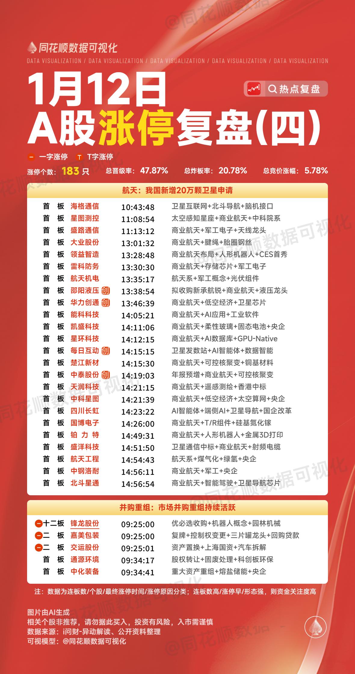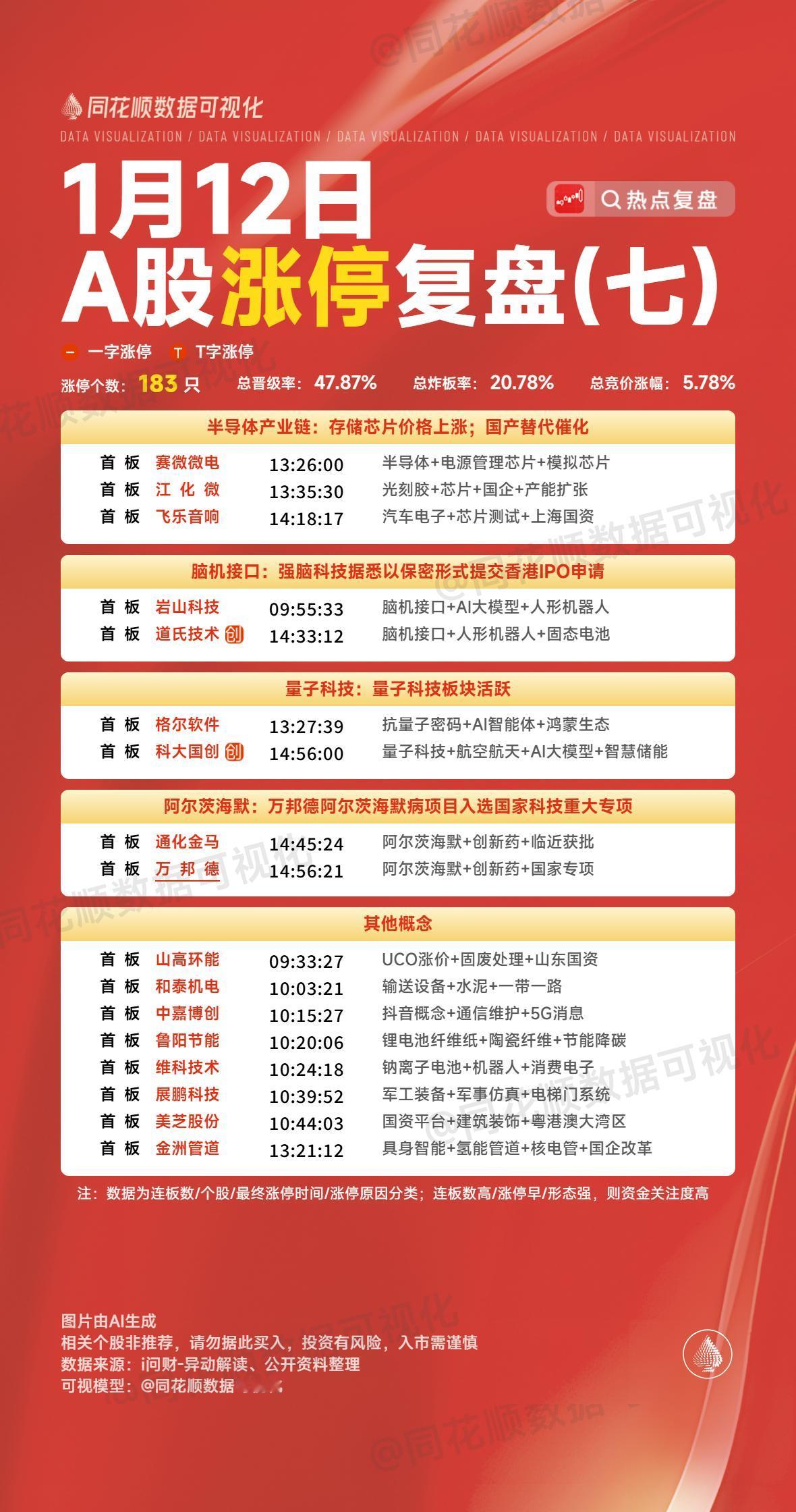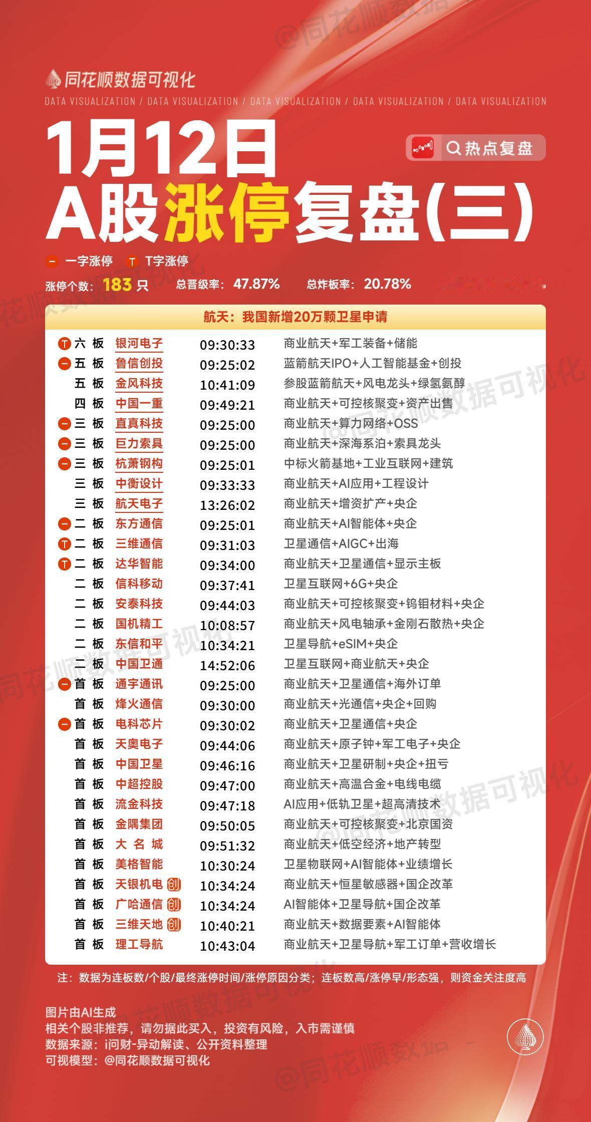 1月12日复盘:蓝色光标、利欧股份、岩山科技、金风科技、雷科防务隔日走势的一些看法! 1、蓝色光标(GEO) 早盘竞价引力、利欧大单一字板,这对于整个GEO方向有非常大的带动作用,蓝色近5个点的高开也是有明显抢筹,开盘顶住分歧后跟随板块走出趋势上升,并且在早盘就有资金承接封板,虽然板上有一定分歧,但是板块整体非常强势的情况下,午后还是彻底封死涨停! 盘后的龙虎榜相城大道净买入5.7亿,中山东路买入4亿,卖出1.7亿,开源徐州分买入4亿,卖出3.2亿,深股通净买入3.8亿,还有一个量化净买入1.3亿,卖盘华泰学院南路清仓卖出12.3亿是主要的抛盘,是明显的潜藏老庄席位,其余卖盘多为做T资金,这个榜单是非常强势的,相城大道近期算是非常格局的资金,而且是多路资金合力做多蓝色去挑战严重异动更多的可能是看到了志特异动后能够持续表现,再加上GEO今天有明显加强,所以隔日蓝色继续趋势上行的概率还是很大的,至于严重异动,貌似对于20cm个股来说一直影响不大! 2、利欧股份(GEO) 利欧今天早盘竞价直接大单一字的表现是非常强势的,而且因为它的强势表现对于整个GEO都是有明显带动的! 盘后的龙虎榜是3日榜,上榜资金有3个机构和中山东路,中山东路是明显首板的买盘,卖盘看着消闲派止盈,但是大概率是周四卖的,毕竟今天整体量能非常小,不可能有那么大的抛盘,这样的榜单还是非常强势的,而消闲派倒在黎明前曾经在另外一只个股鲁信身上出现过,而之后鲁信已经走出5板了,所以利欧作为GEO方向绝对的龙一,今天这么强一字的情况下,隔日继续一字的概率非常大,毕竟现在市场的量能完全能够支撑它持续连板,而且利欧的辨识度非常高,只要敢不开一字,盘中承接的资金自然会源源不断,这只个股的走势是可以参考脑机接口的岩山! 3、岩山科技(脑机接口) 岩山竞价4个点的高开转强非常明显,所以开盘顶住分歧后是有资金强势拉升上板的,虽然板上有一定分歧,但是最终还是很快彻底封死涨停,走出了一个强势的4+1反包走势! 盘后的龙虎榜消闲派、中泰深圳分、成章路买入都超过1亿,深股通净买入2.6亿,另外一个席位量化买入也超过1亿,卖盘多为获利盘离场,岩山上周五断板后是一个非常强的分歧换手,今天在板块修复明显的情况下率先强势修复,而且它的主动性是明显强于创新和熊猫的,再加上市场量能大增,岩山反而成了资金最好的选择,最终是明显缩量反包,这样的话隔日得溢价是能够保证的,但是脑机接口方向整体相比于商业航天和GEO方向要弱很多,岩山想要持续性确实有难度,那么隔日它断板的概率是非常大的,而且今天是大幅缩量,隔日不开一字的话,抛盘会非常大,所以对于它来说,更适合分时均线强支撑的低吸,要打板做确定性至少板块要有明显共振! 4、金风科技(商业航天) 周末商业航天利好颇多,再加上通宇强势一字板的带动,所以早盘整个商业航天方向走出了非常高潮的表现,金风周五烂板的情况下高开6个多点的表现是超强的,所以开盘就有资金强势做多,在高位放出一定量能后有资金强势封板,虽然在板上有多次分歧,但是板块整体强势的情况下,还是在早盘就彻底封死涨停,走出了强势的5连板形态! 盘后的龙虎榜徐晓选择加仓,华泰文昌中路和万豪世家两个游资席位入场接力,卖盘除了重庆解放碑是近期做多的游资席位止盈外,其余大卖盘都是明显的潜伏盘,陈小群、消闲派、中山东路和作手新一集体锁仓,这样的表现是超强的,今天整个商业航天再次大高潮,多只个股集体严重异动,金风至少是没有严重异动的个股,所以在早盘资金做多的欲望非常强,隔日早盘继续上冲毫无问题,但是如果这些触发严重异动的个股出现负反馈,对于整个商业航天方向肯定会有影响,所以对于金风来说,对于没持仓的朋友来说,确实已经没买点了,而车上的朋友更多的要做好仓位管理! 5、雷科防务(商业航天) 雷科连续控异动的情况下在今天板块高潮时小幅高开,之后在板块整体强势的带动下走出了趋势上行,午后板块持续高潮,雷科也出现资金强势拉升封板,虽然板上有一定分歧,但是最终还是彻底封死涨停! 盘后的龙虎榜粉接力买入1.9亿,陈小群净买入6千万做T引导,买盘还有两个机构席位,卖盘消闲派卖出大部分仓位,这个榜单说明游资在异动出现的情况下也是开始慢慢撤退,但是结合今天触发严重异动的个股非常多,雷科的挑战反而没有那么可怕,而且它是主板挑战严重异动个股中仅有的两只封住涨停的个股,而且相比于卫通,它的形态也更好,隔日它开盘的表现或许会是挑战严重异动个股的风向标,只要它不出现明显负反馈,那么在市场持续强势的情况下,严重异动可能真的就没那么可怕了,而一旦它负反馈明显,那么接下来市场主板个股可能依然会持续去控制严重异动! 本文只限于分享和交流,不构成投资建议,股市有风险,投资需谨慎!